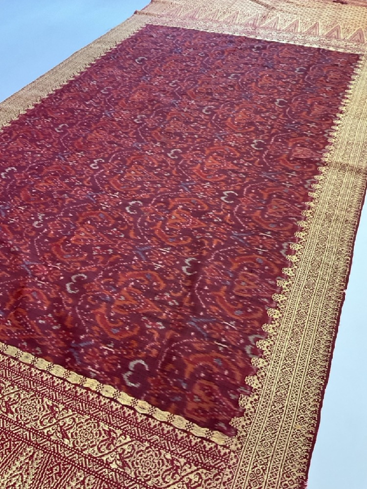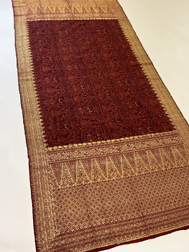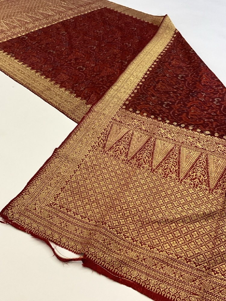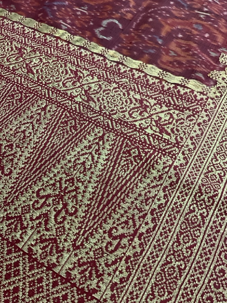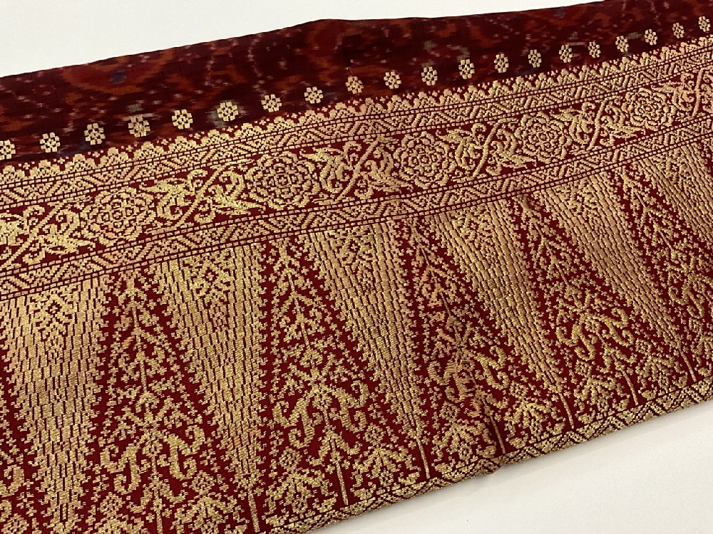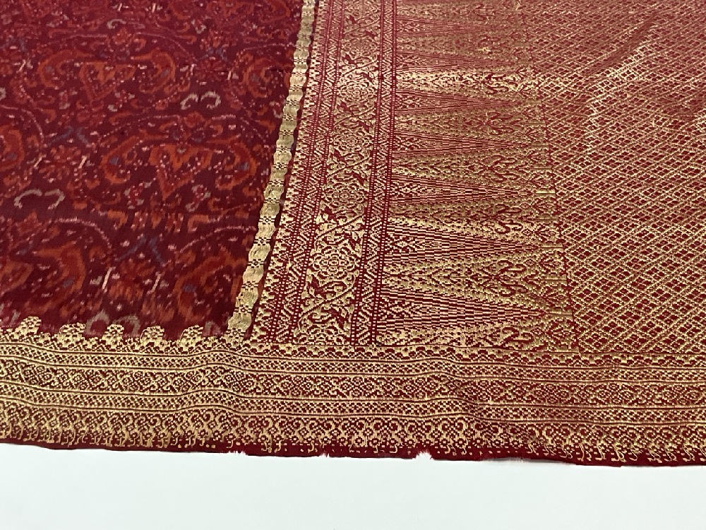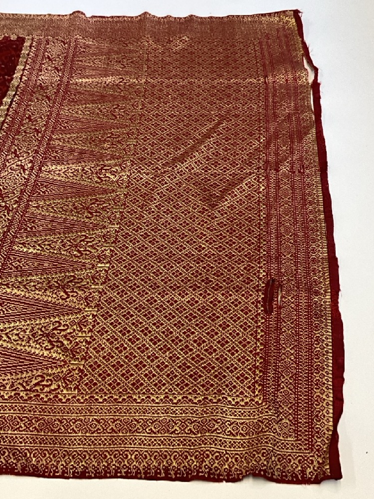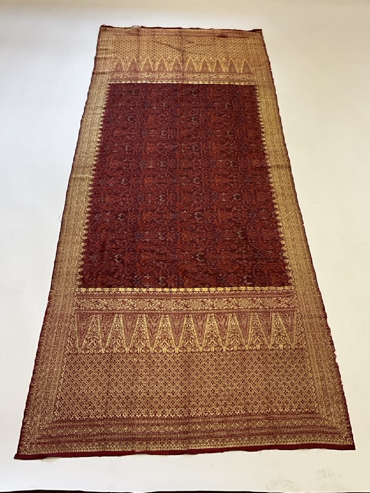 19th Century Indonesian Sarong Textile. Silk with gold thread.