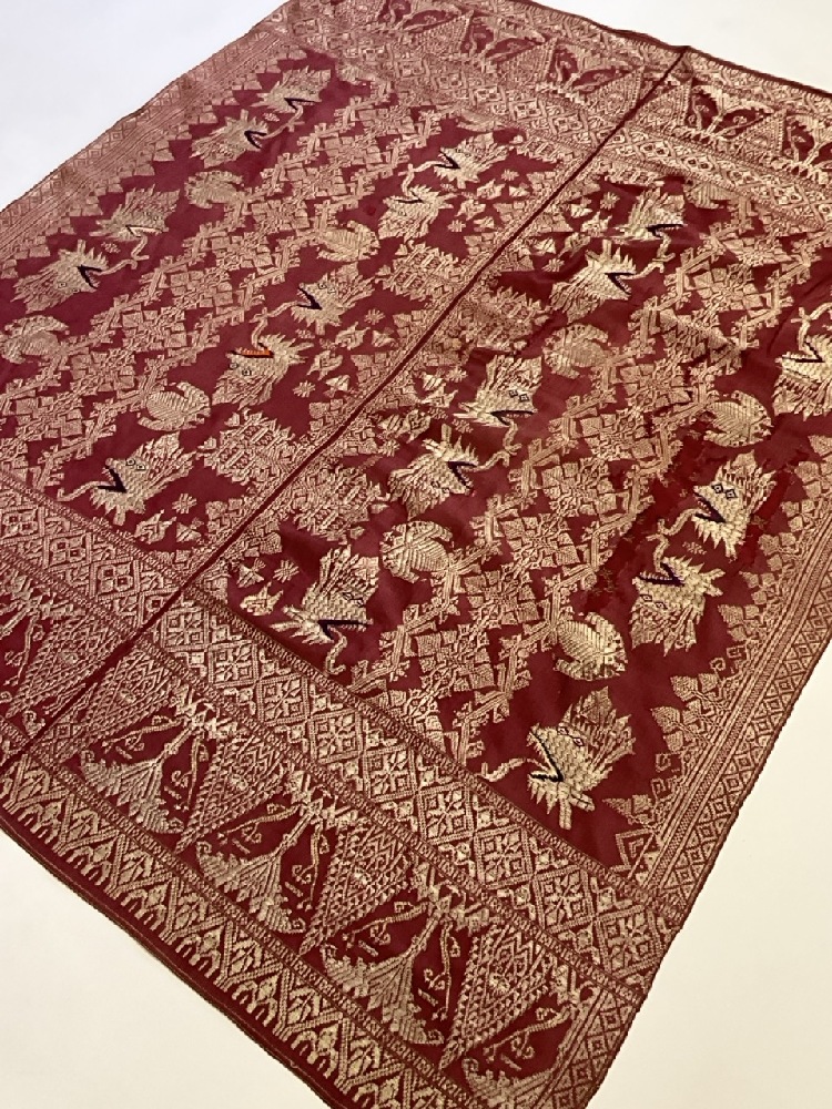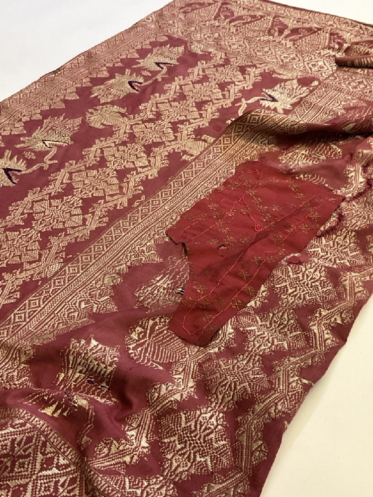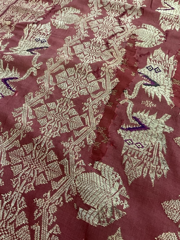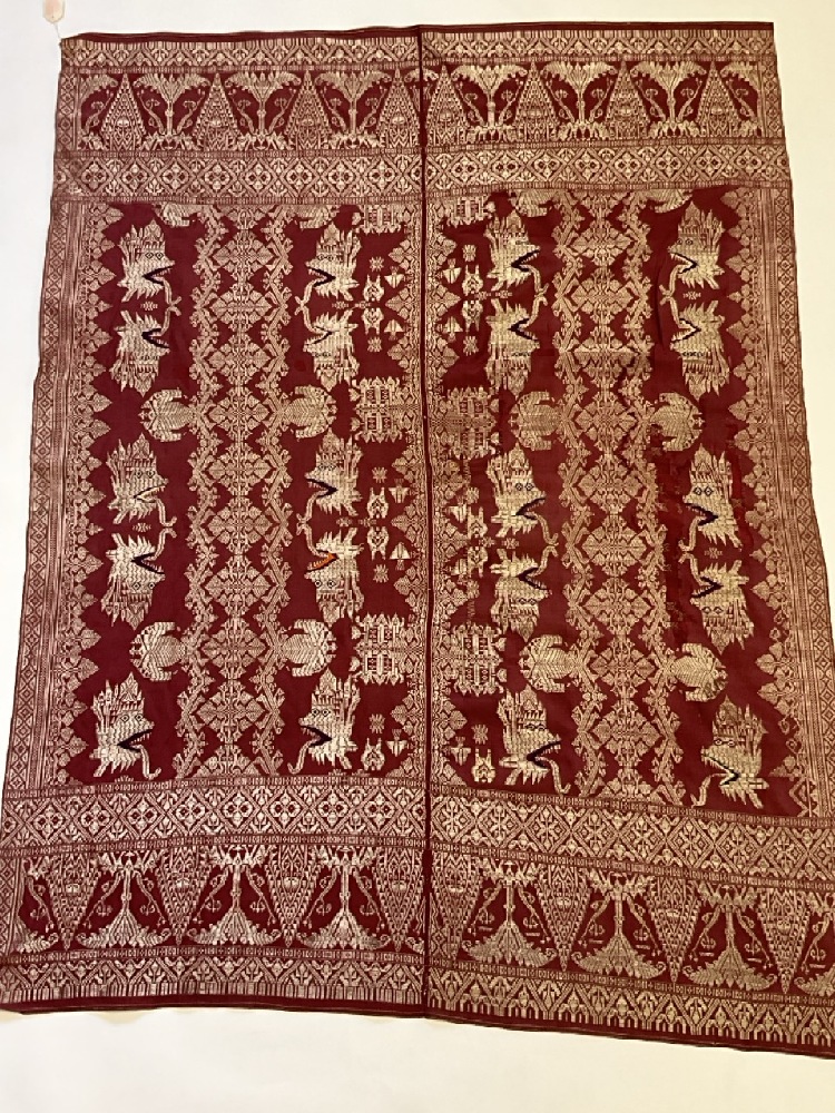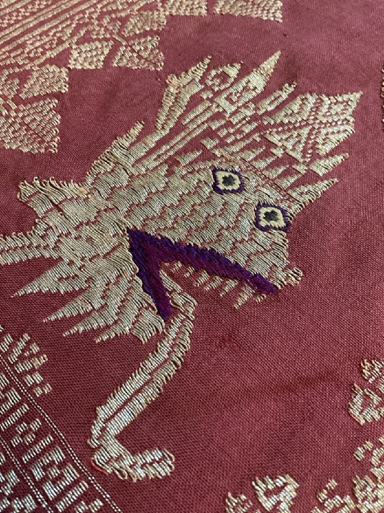 Indonesian Textile with Silk Thread Serpent Fish Pattern 19th C. Two part construction.