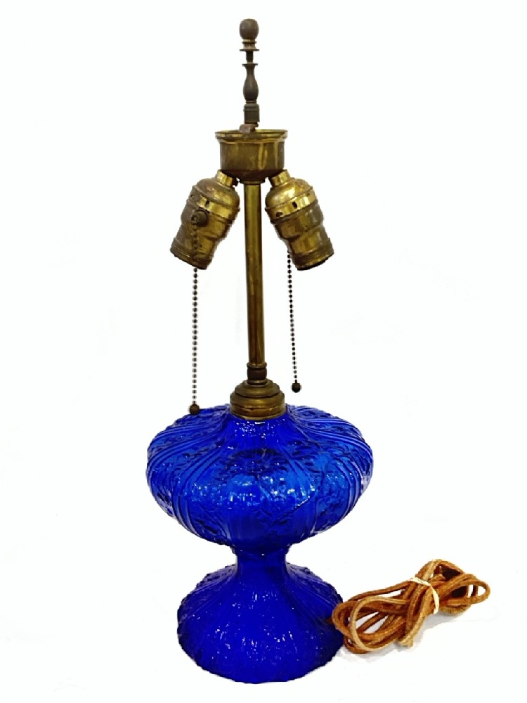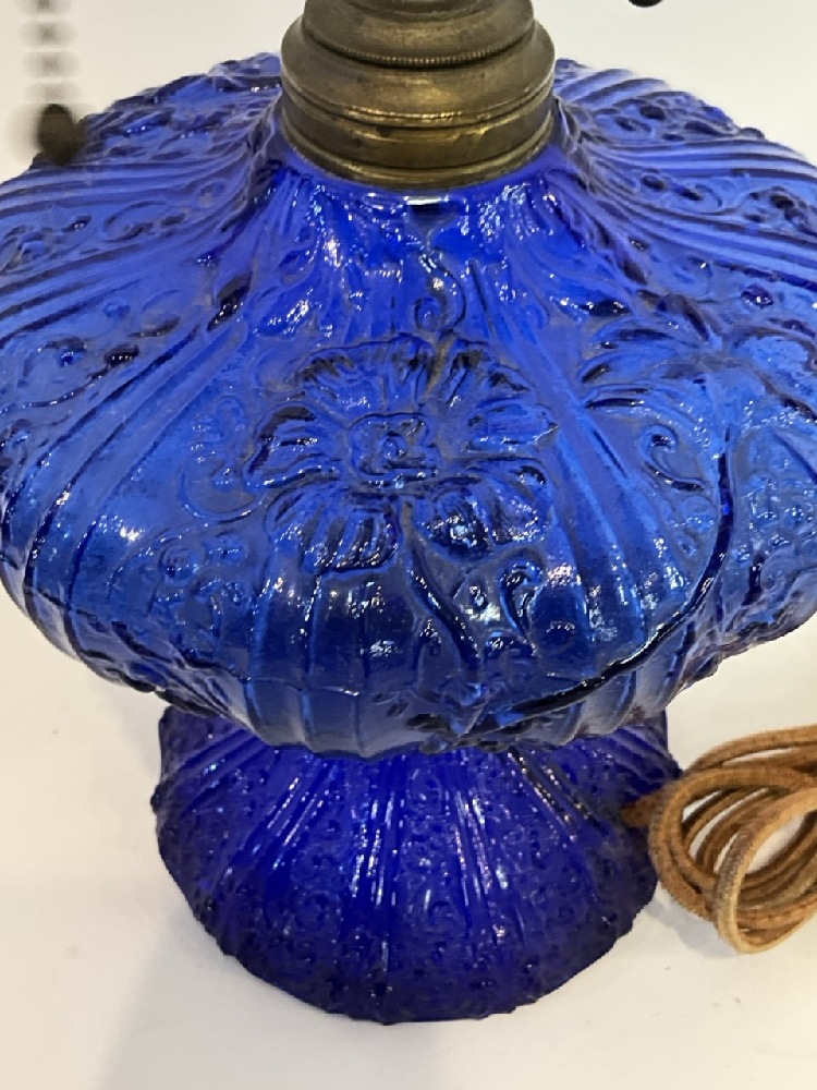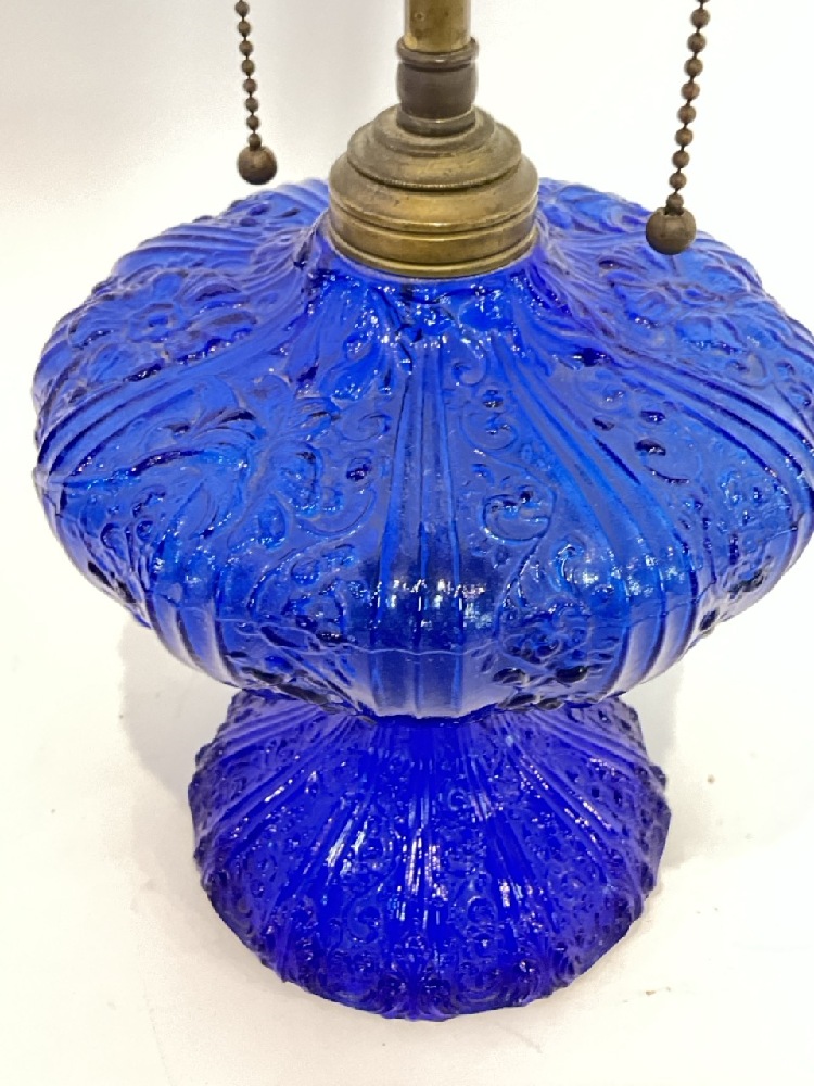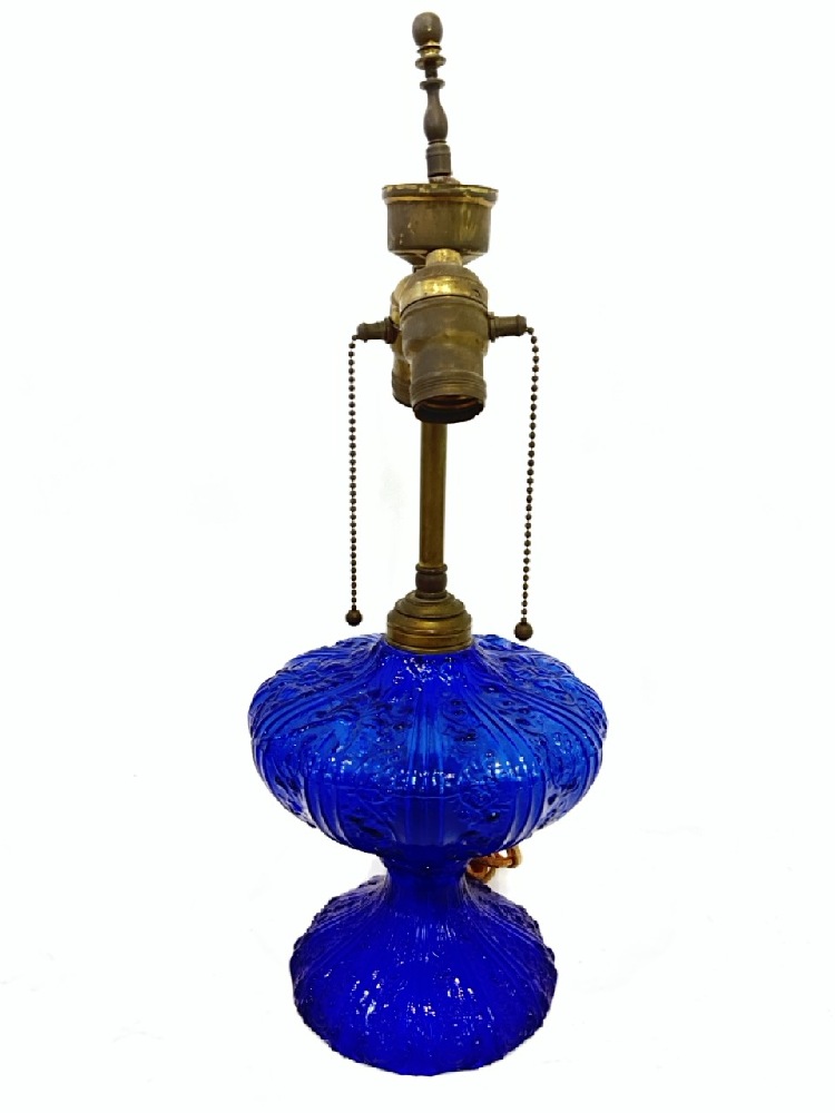 Early Pattern Glass Cobalt Blue Oil Lamp Base, Electrified.