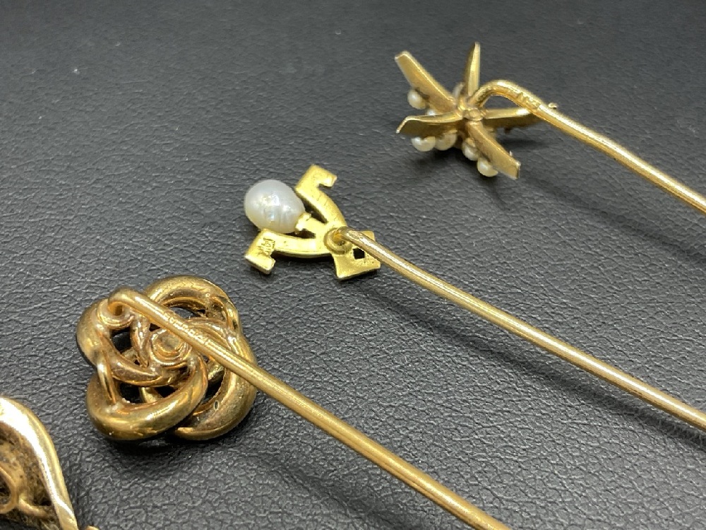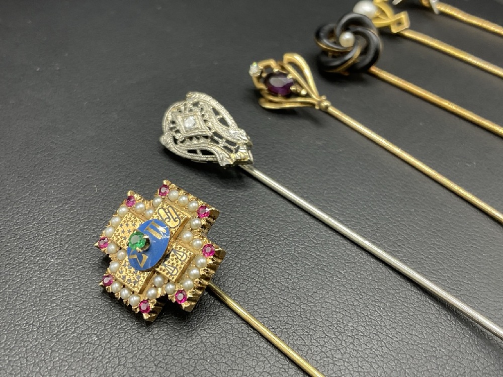 Six (6) 14K Gold Vintage Stick Pins.