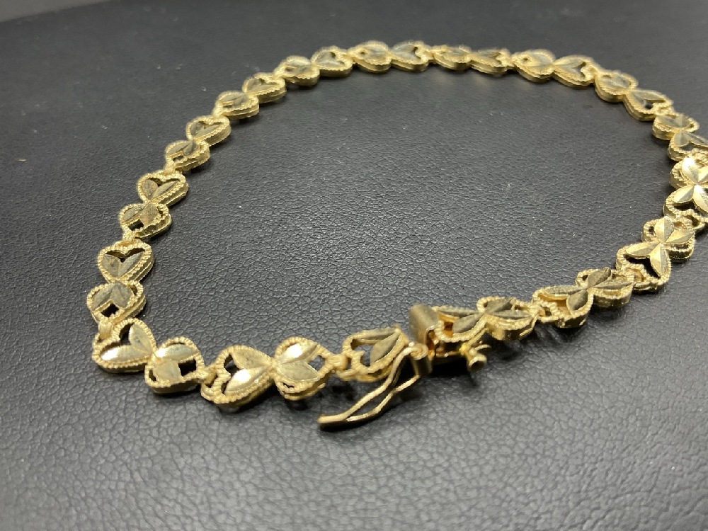 14K Yellow Gold Bevel Cut Heart Bracelet.