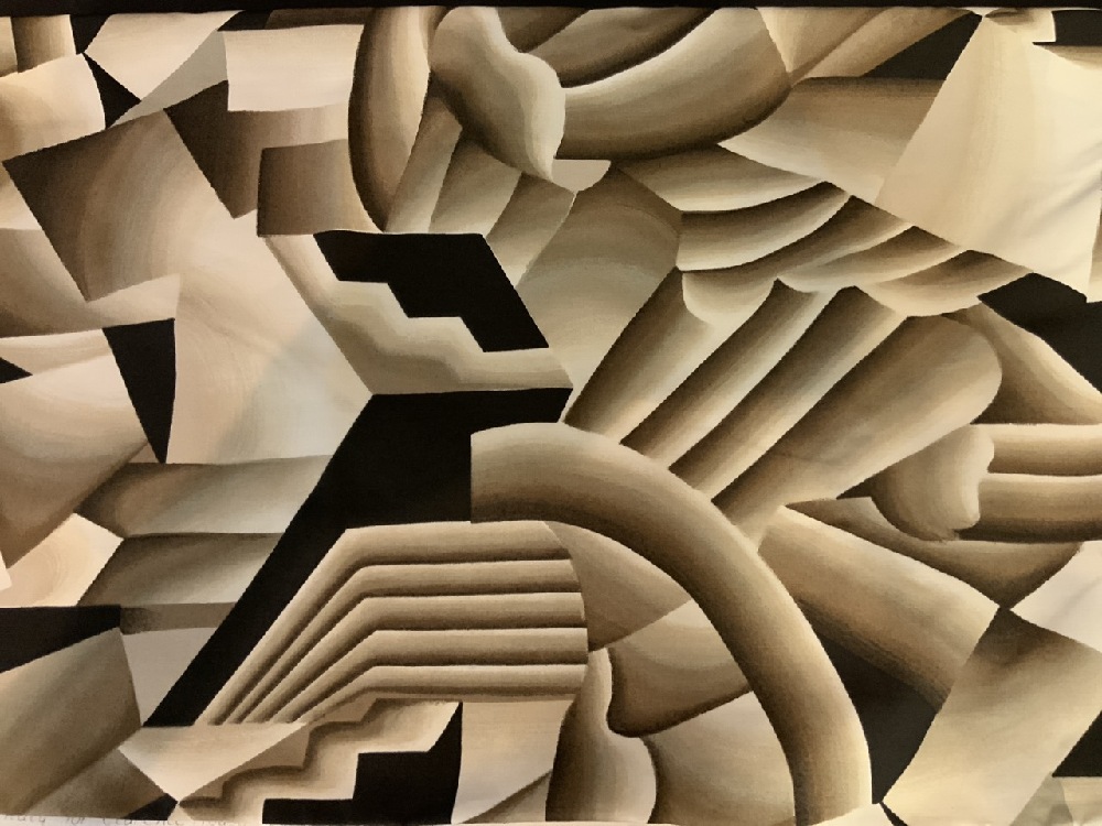 Italian Hand Printed Fabric for Clarence House By Patti, Designed by Kazumi after Ferdinand Leger.