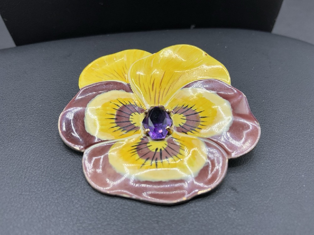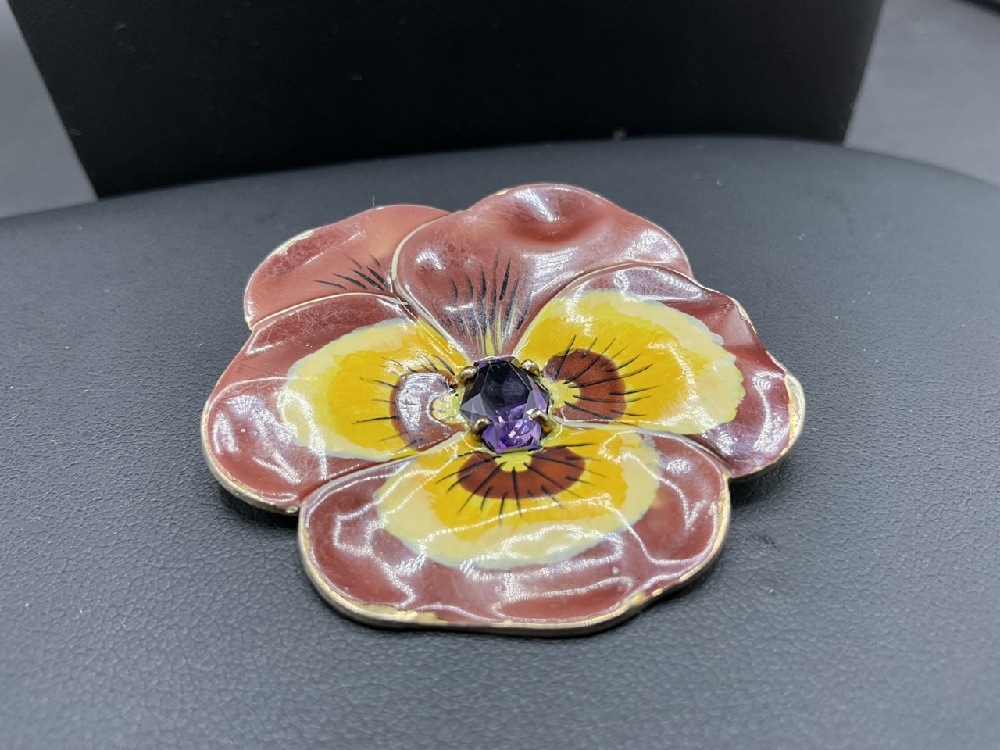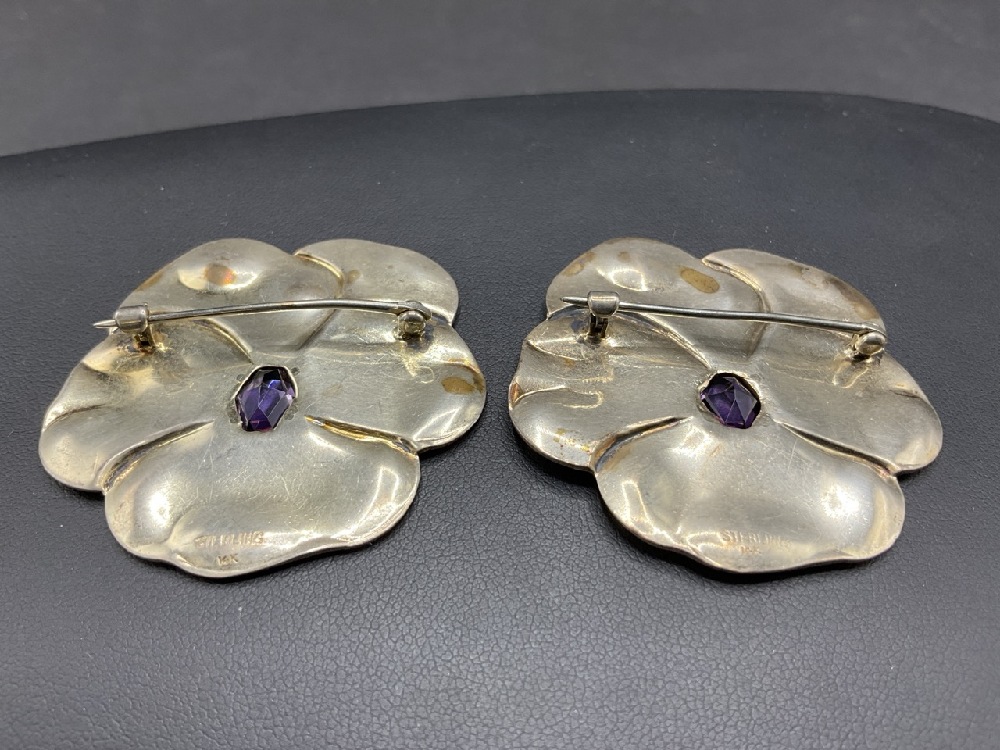 Two (2) 14K/Sterling Enameled Flower Pin with Amethyst Stone.