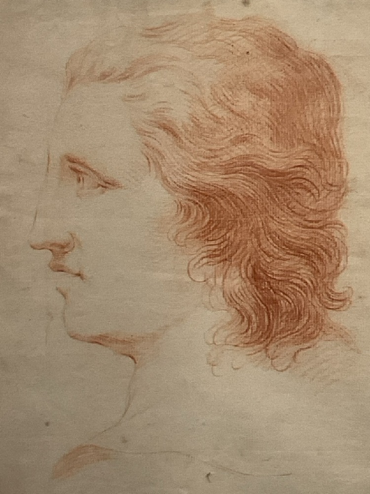 18th c. Old Master Conte Crayon Portrait Sketch.