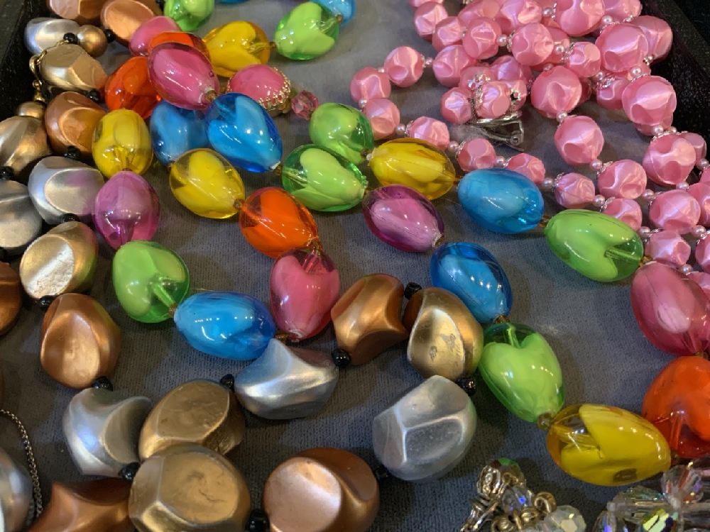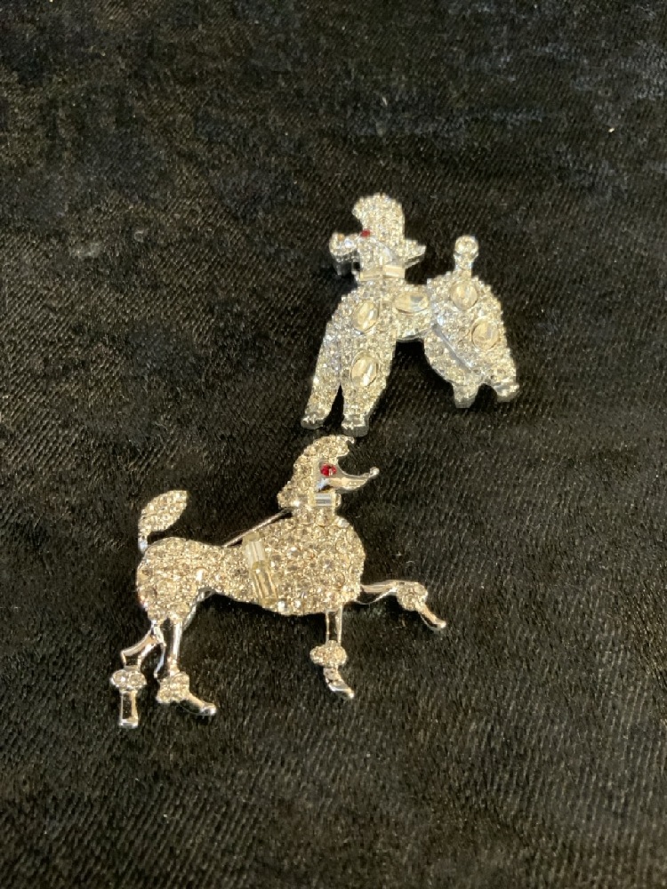 Vintage Estate Costume Jewelry Lot with Pell , Stewardess Air Plane Pens with Plastic Beads and Poodles.