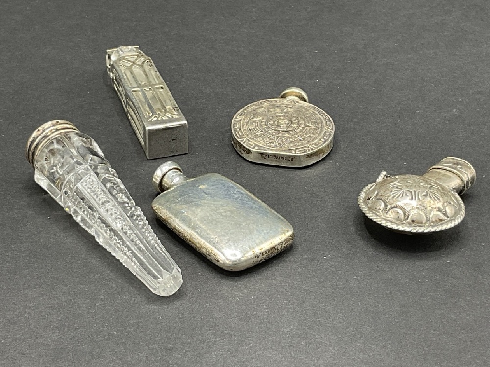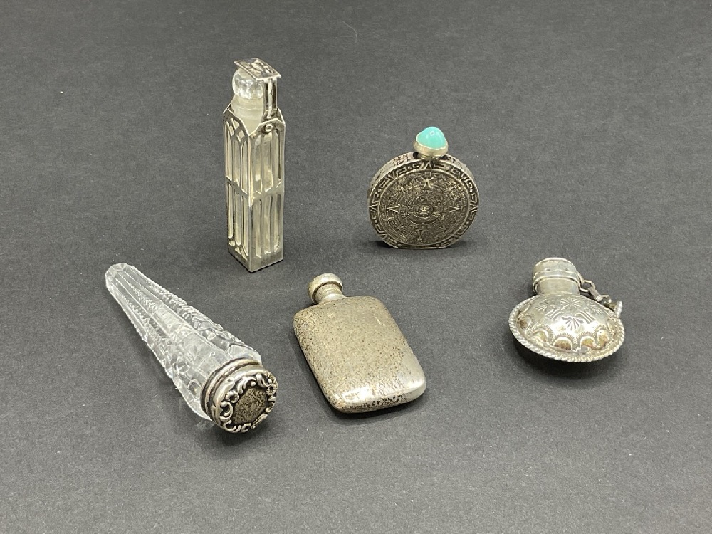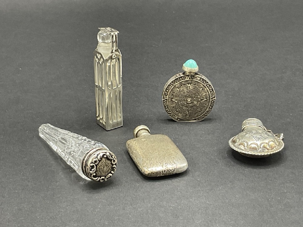 Five (5) Antique Perfume Bottles, Sterling Silver.