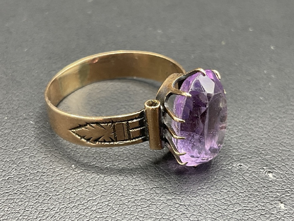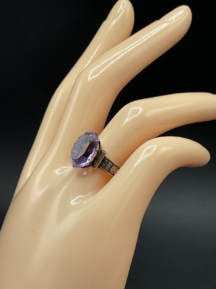 14K Yellow Gold Antique Amethyst Etched Ring.