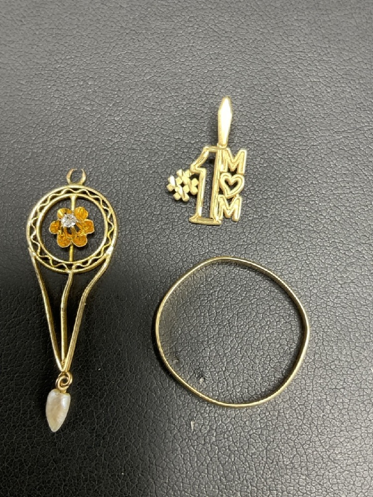 Diamond and pearl pendant (damaged) and band bent