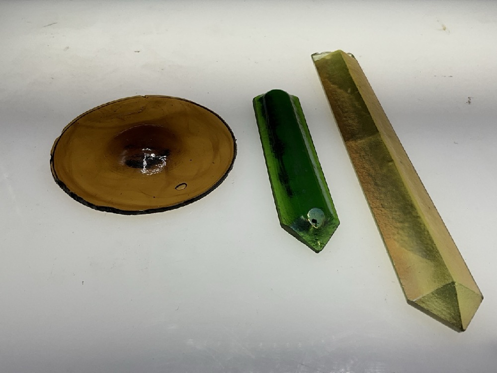 Three (3) Tiffany Favrile Glass Prisms and Disc. Unsigned, attributed to.