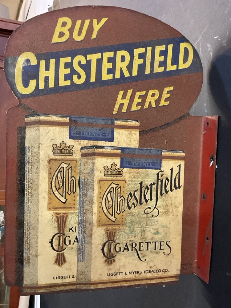 Chesterfield Cigarettes Sided Mount Advertising Metal Sign. Double Sided.