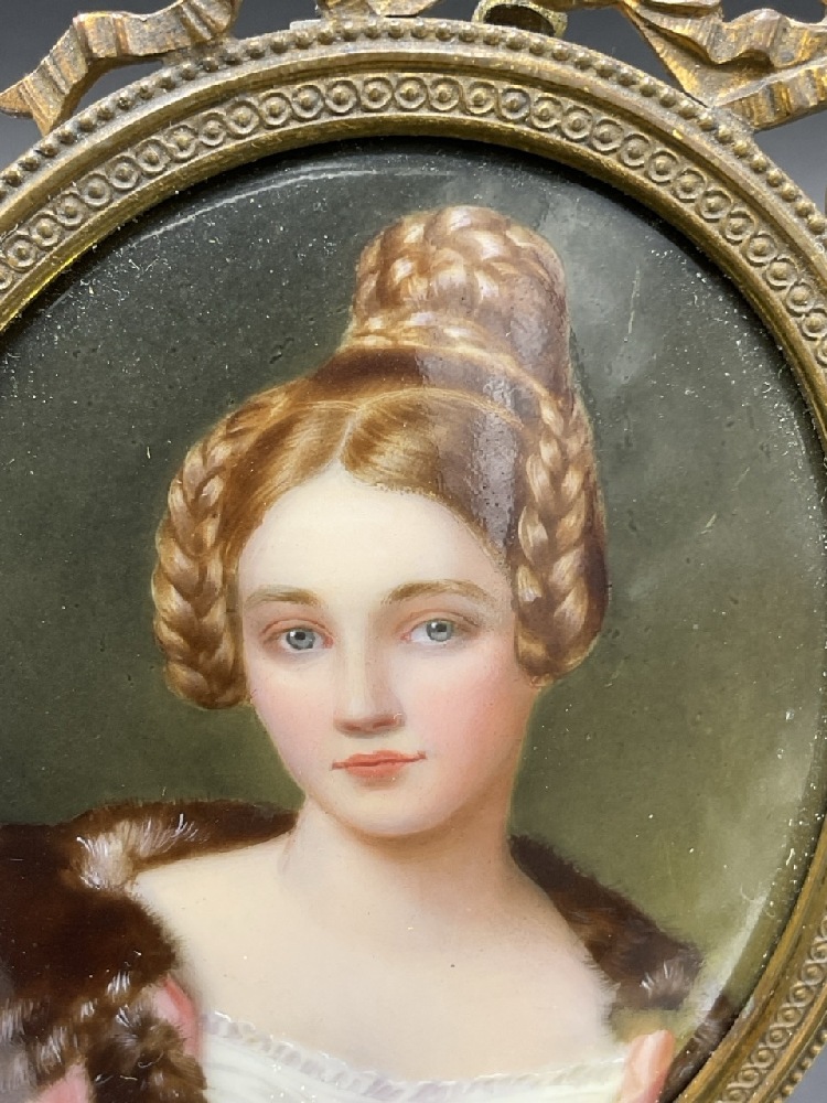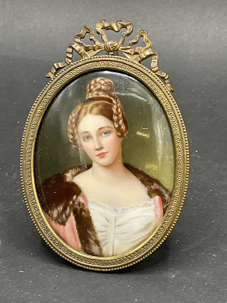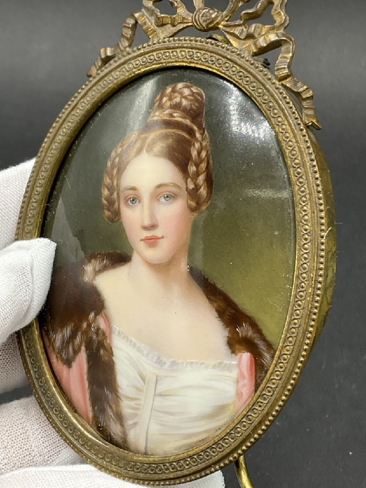 19th C. Miniature Oil Portrait Painting Framed.