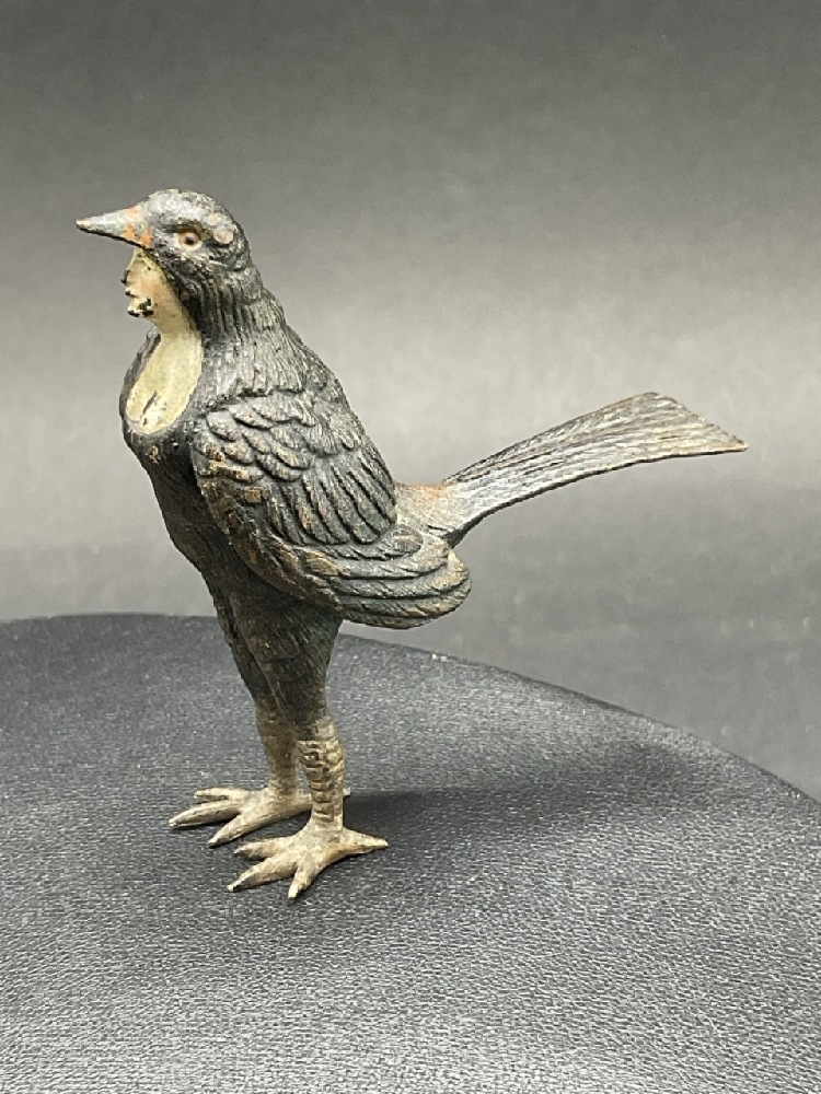 Unusual Cold Painted Bronze Bird Lady Costumed Figure. Signed: Austria Geschutzt.