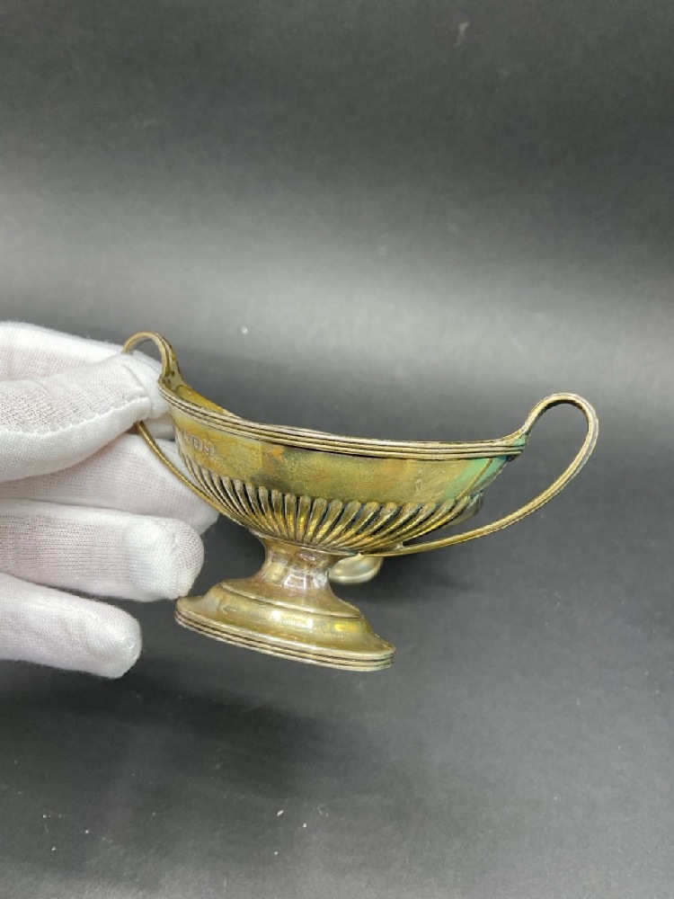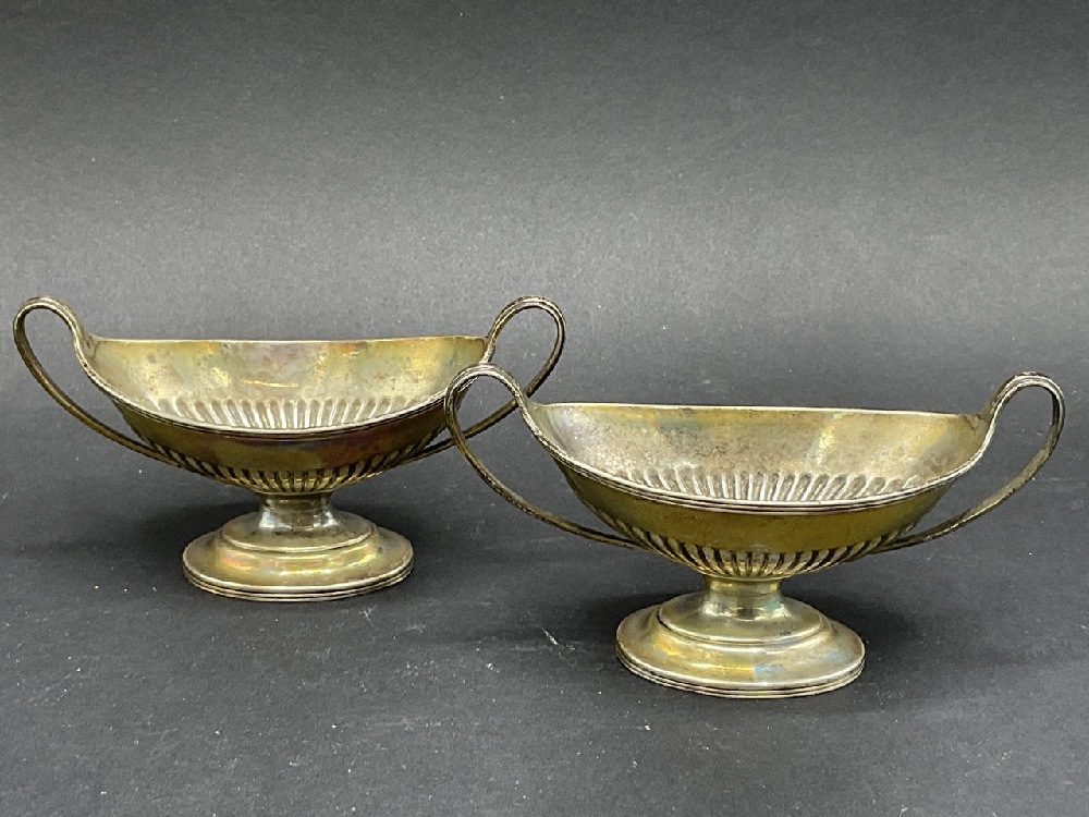 A Pair Antique English Sterling Silver Double Handled Master Salts.