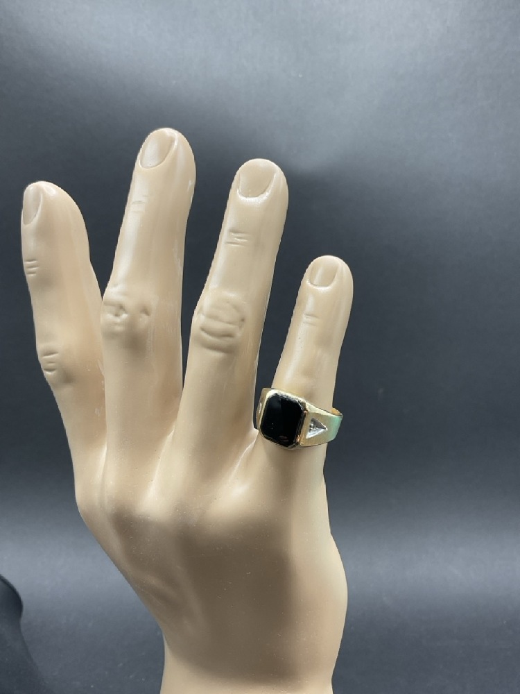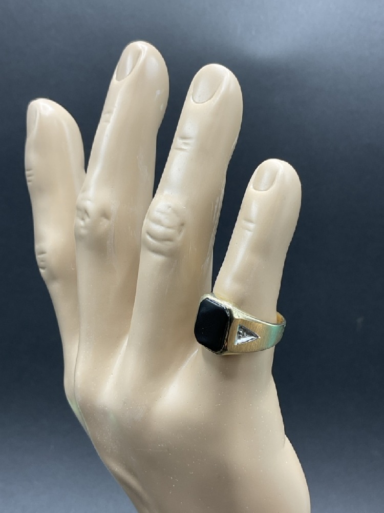 10K Yellow Gold Onyx and Diamond Ring.