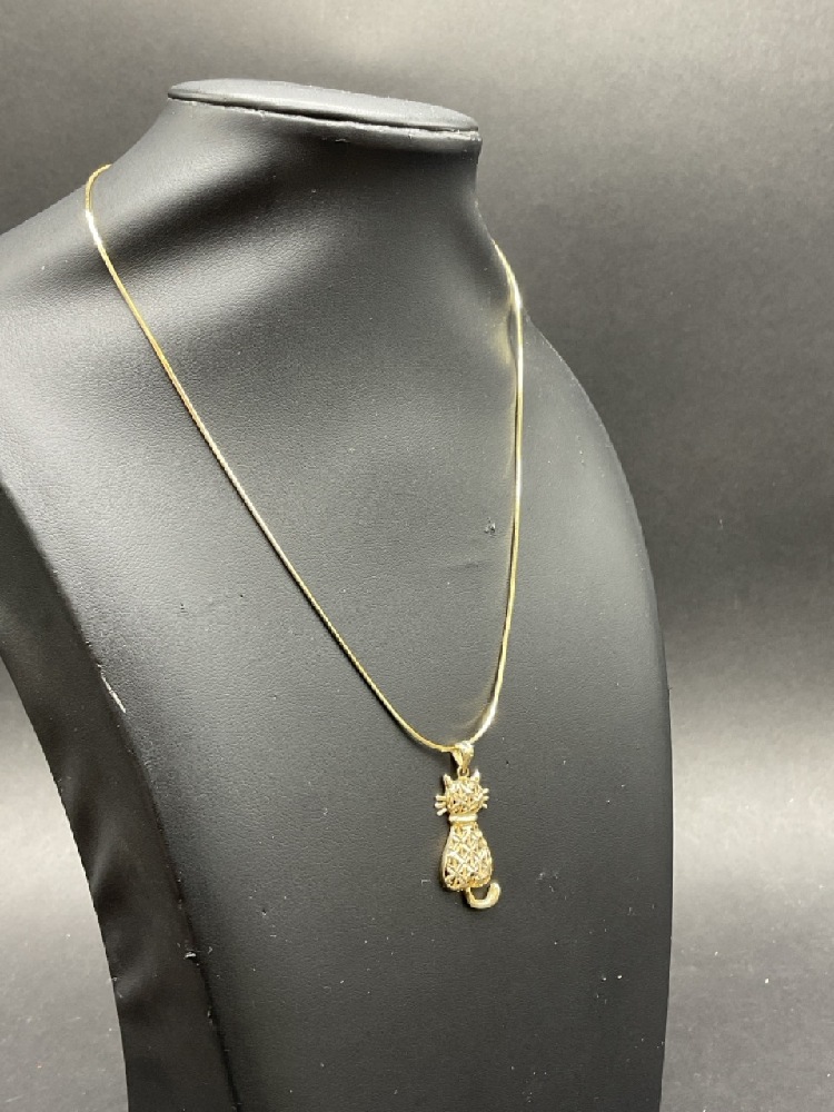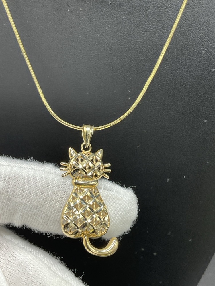 14K Yellow Gold 16” Necklace w/ Cat Pendant.