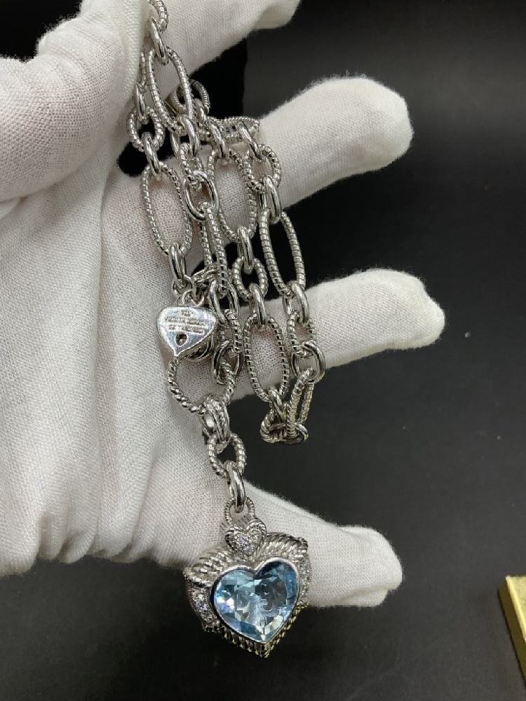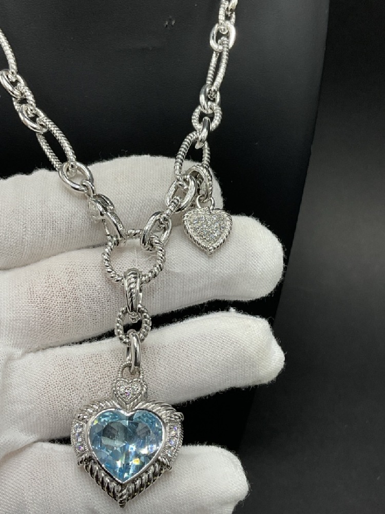 Judith Ripka Sterling Silver Necklace with blue topaz heart shaped stone.