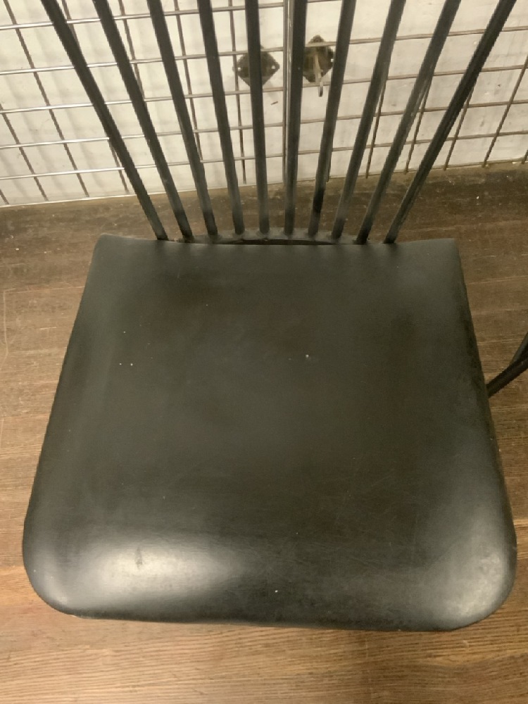 A Pair, Wrought Iron Mid Century Modern Spindle Back Chairs. Dimensions: 39 1/2” x 17” x 18”