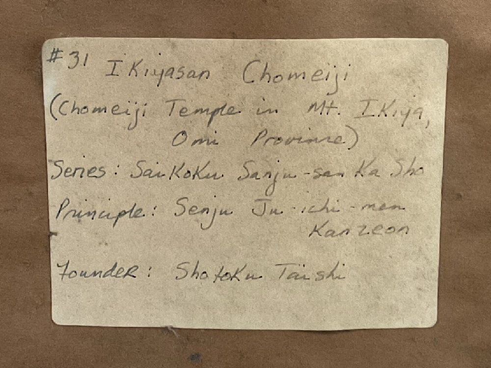 Ikiyasan Chomeiji Japanese Woodblock (Chomeji Temple in Mt. Ikiya, Omi Province)