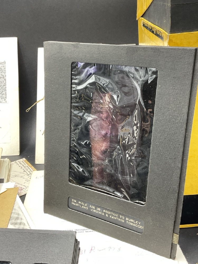 Original Binder filled with research pertaining to Harkavy, published by Butterworth. Studies on the affects of Tobacco Allergies to the Skin.