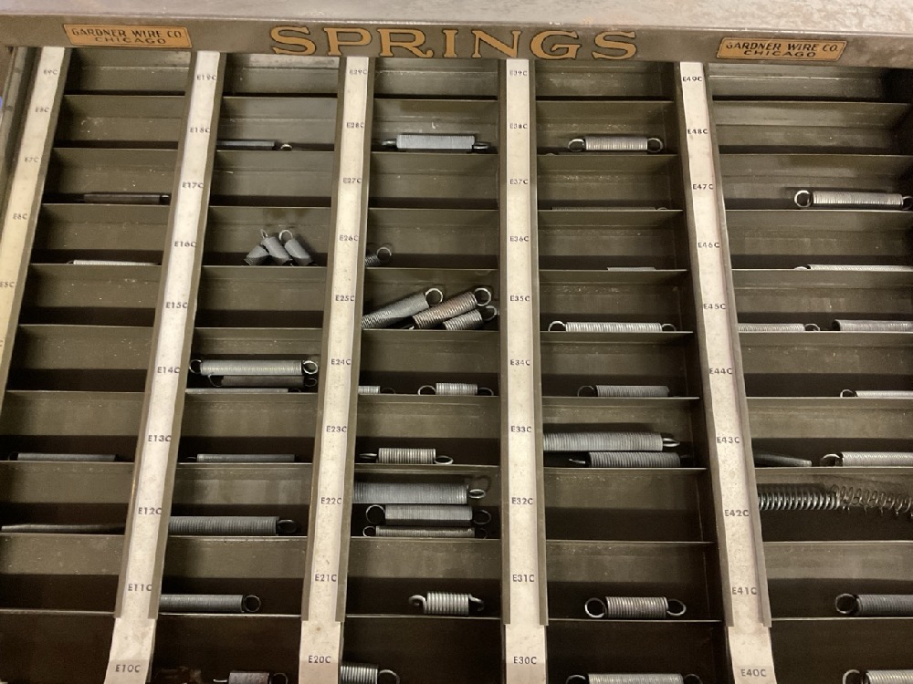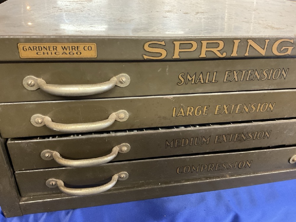 Gardner Wire Co. Chicago Springs Cabinet w/ Content. Four drawers. As seen in photograph preview.
