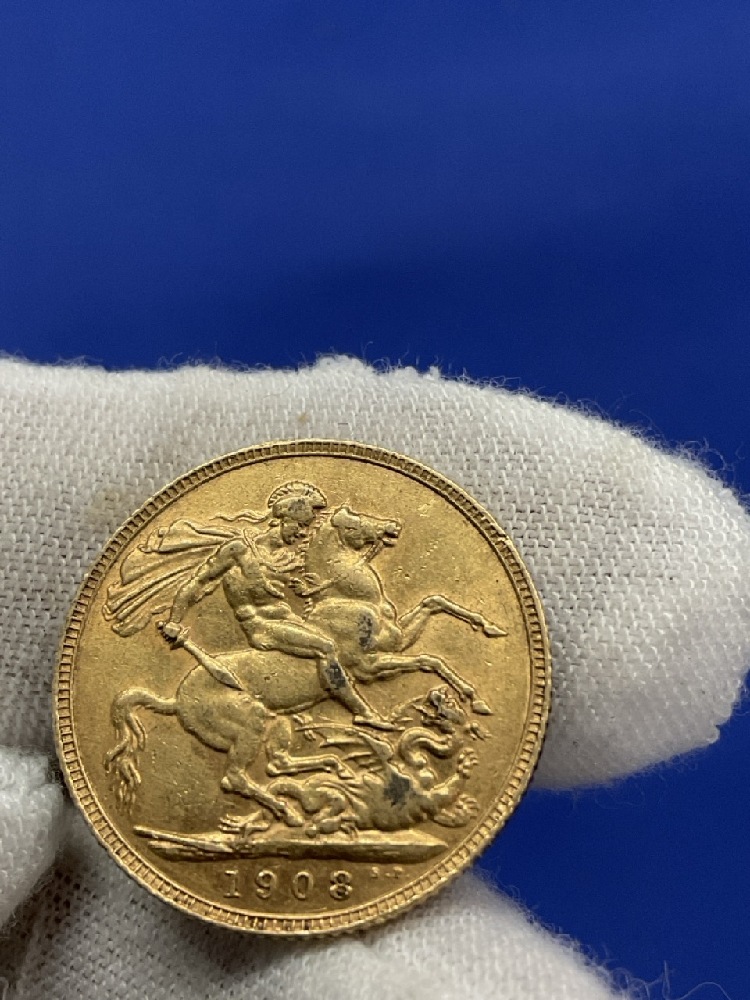 1908 British Gold Coin Sovereign.