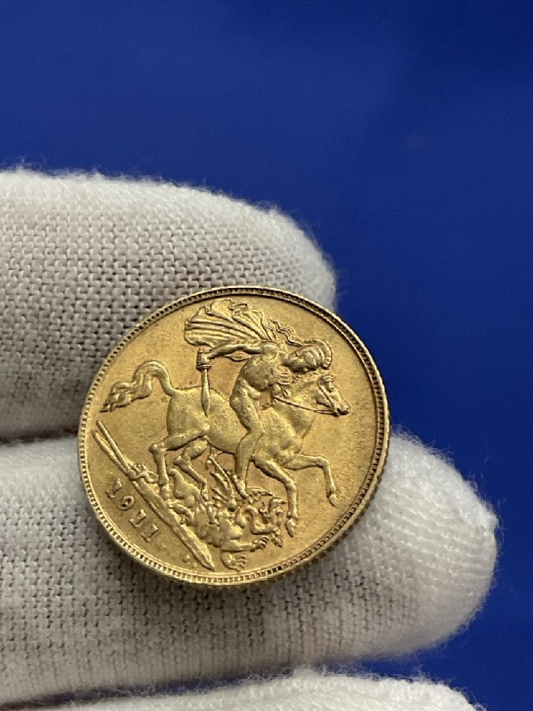 1911 British Gold Coin Half Sovereign.