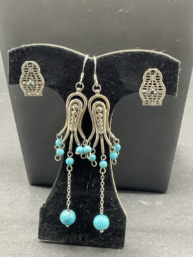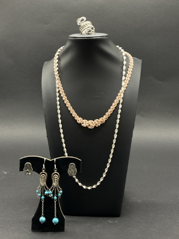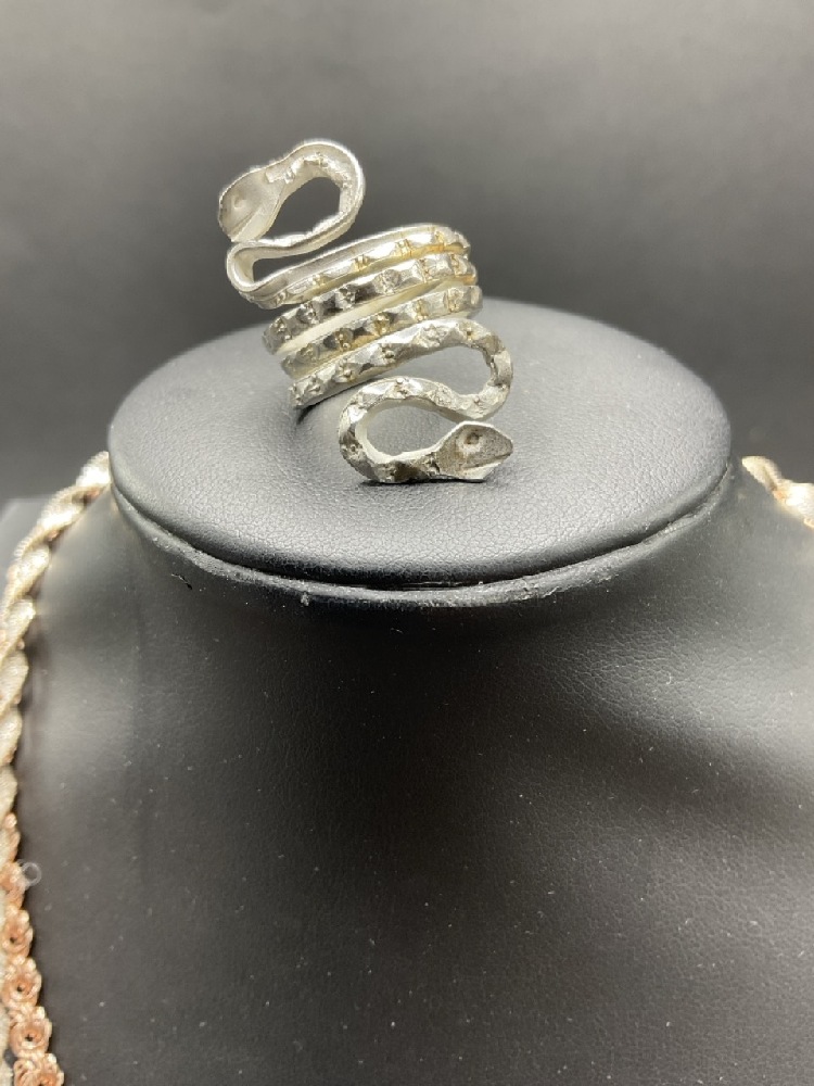Sterling Silver 5 pcs Necklace, Earrings, and Snake Ring.
