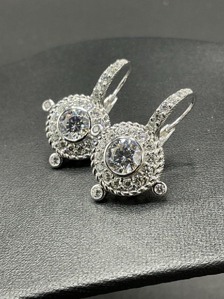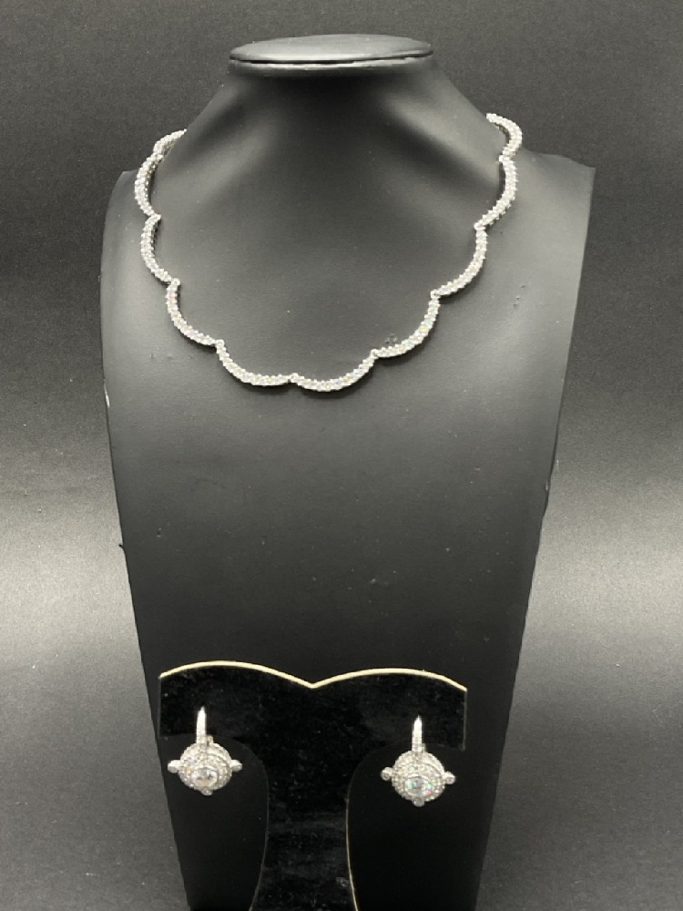 Judith Ripka Sterling Silver Choker and Earrings Set with CZ Stones.