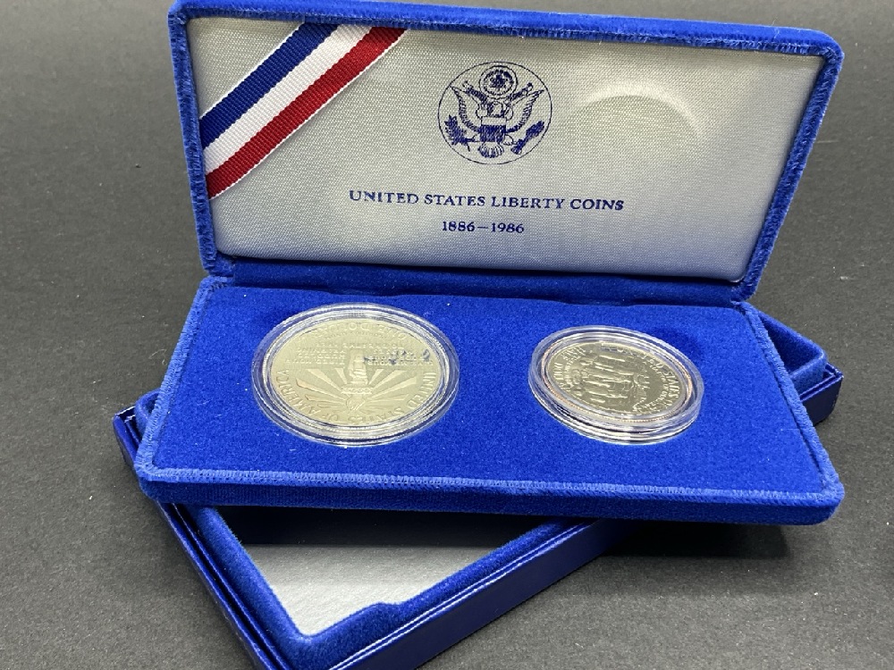 Two (2) 1886-1986 U.S. Liberty Silver Coins Dollars and Half Dollars.