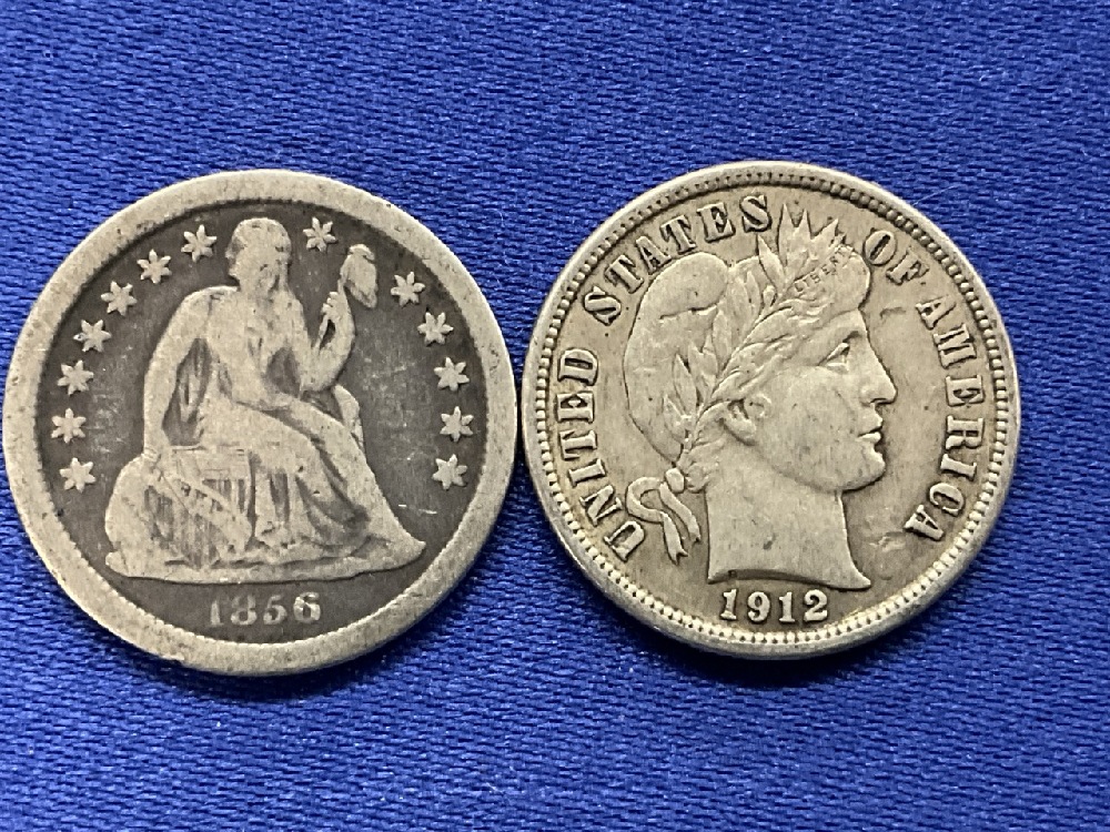1856O Seated Dime O Above Wreath 1912-p full Liberty Barber Dime.