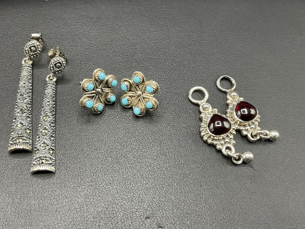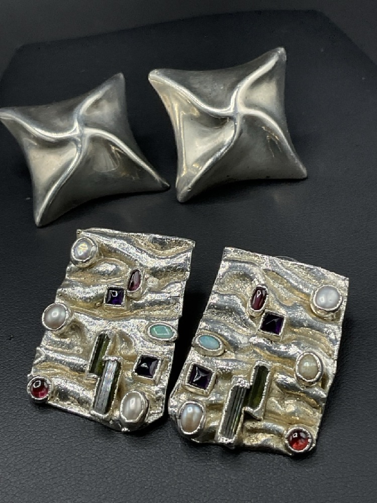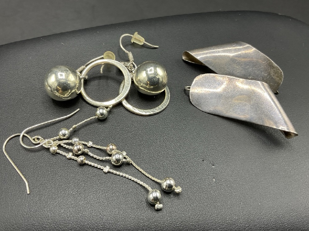 Nine (9) Pairs of Sterling Silver Earrings. One Set Needs Backs. Good Condition, Please See Photograph Preview.