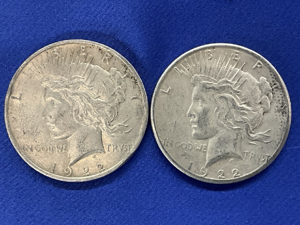 Two (2) 1922 U.S. Silver Peace Dollars.