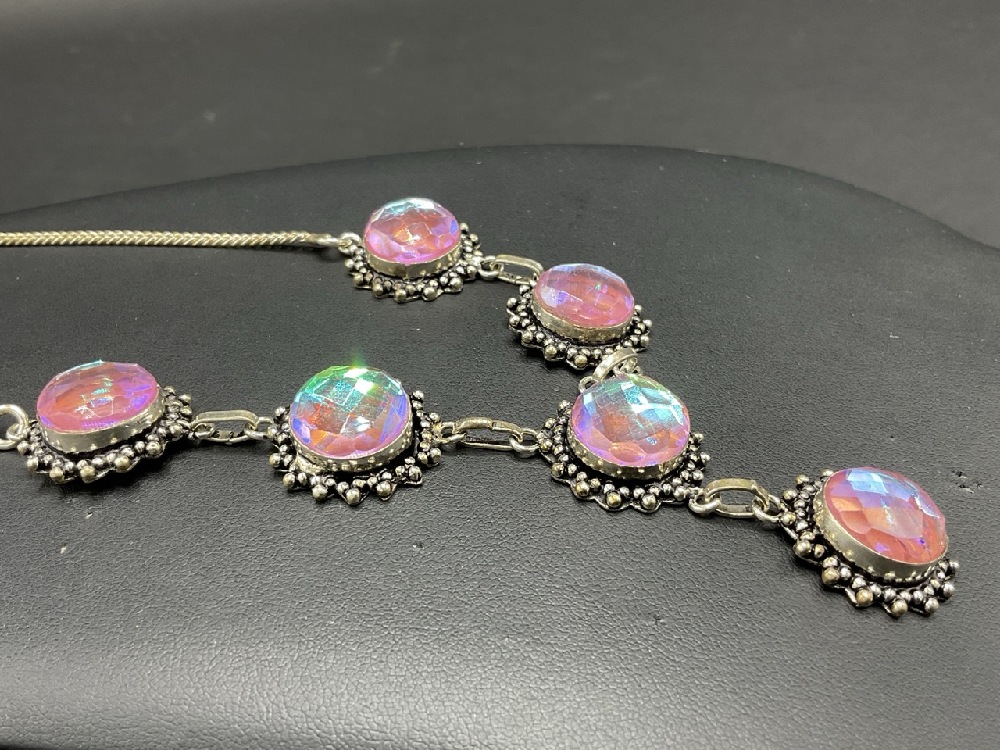 Sterling Silver Pink Topaz Necklace. Good Condition,Please See Preview Photographs.