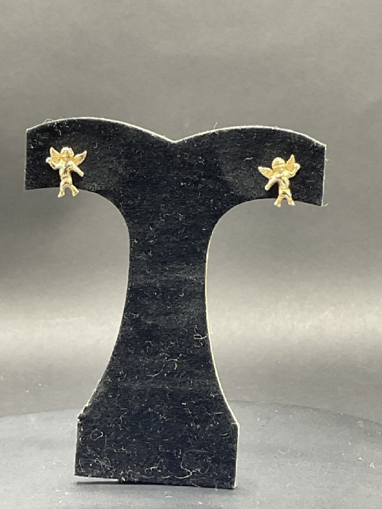 14K Yellow Gold Angel Pierced Earrings. .53 g