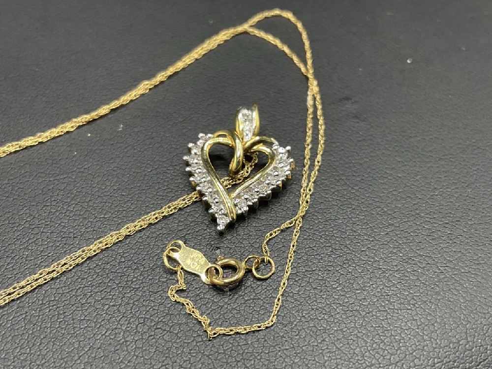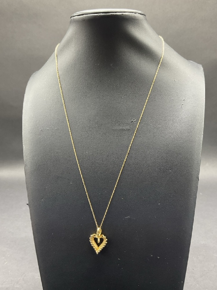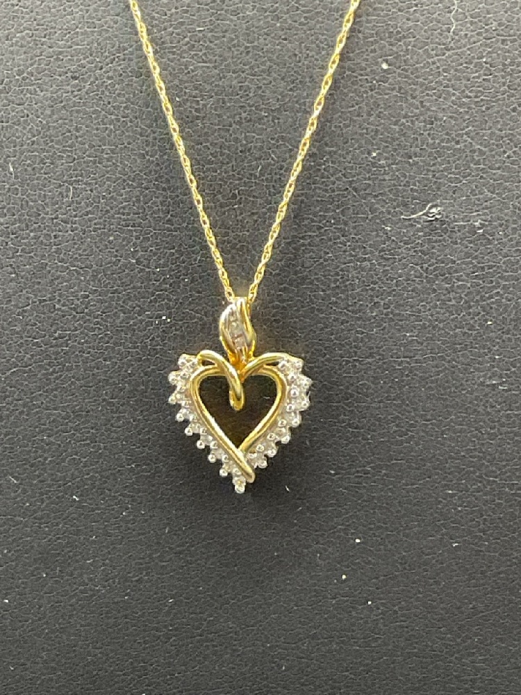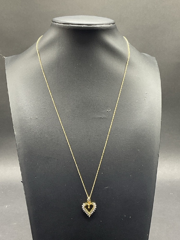 14K Necklace with Diamond Heart Pendant. 18” Chain, 1.4 g Good Condition, Please See Preview Photographs
