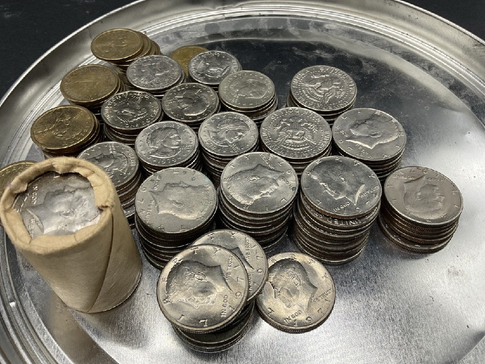 U.S. $48.00 Kennedy Halves, $78.00 Susan B. Anthony and $43 Sacagawea. $169.00 Face Total.