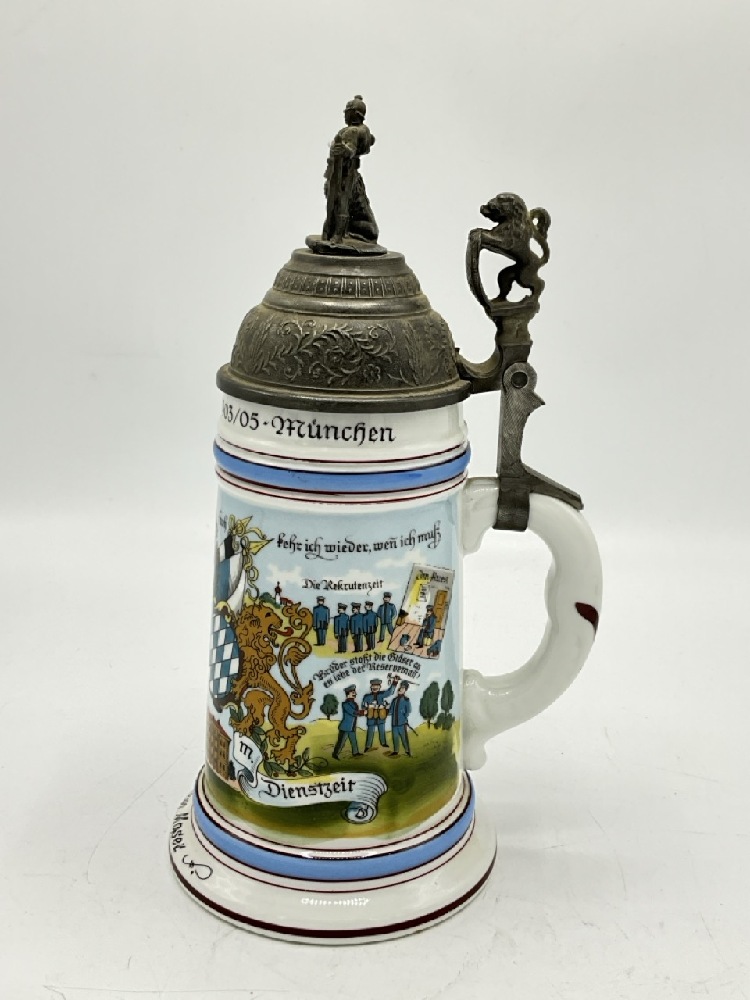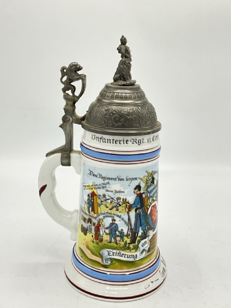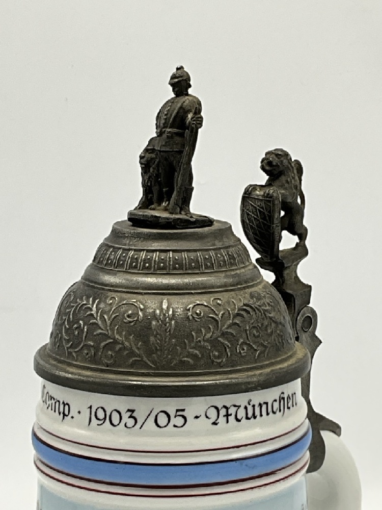 Regimental Lithopane German Beer Stein with Pewter General Moser.
