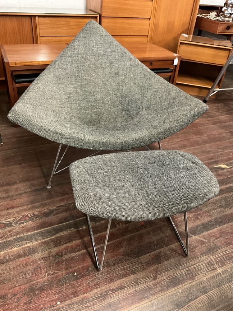 Harry Bertoia Diamond Chair and Ottoman. Early example. Original upholstery. Please see photograph preview.