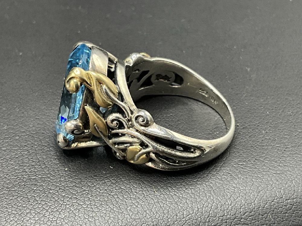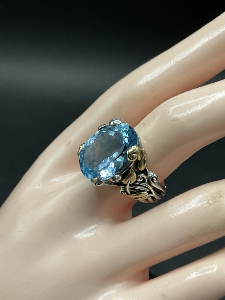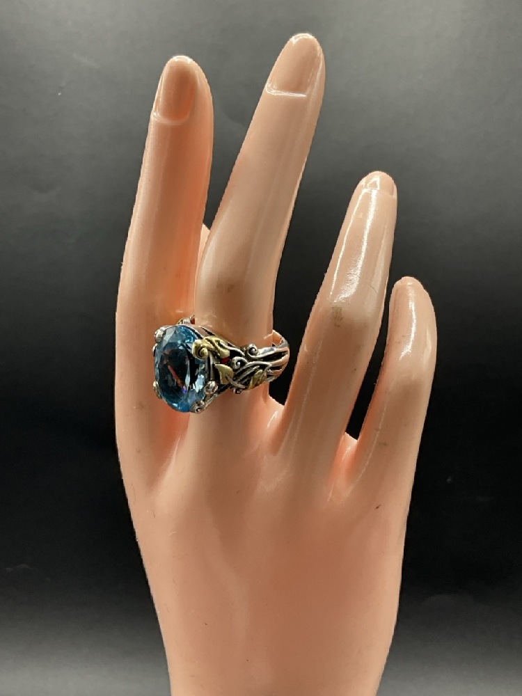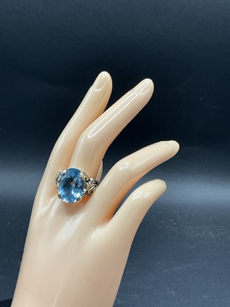 Barbara Bixby 18K and Sterling Silver Blue Topaz Gemstone Ring.