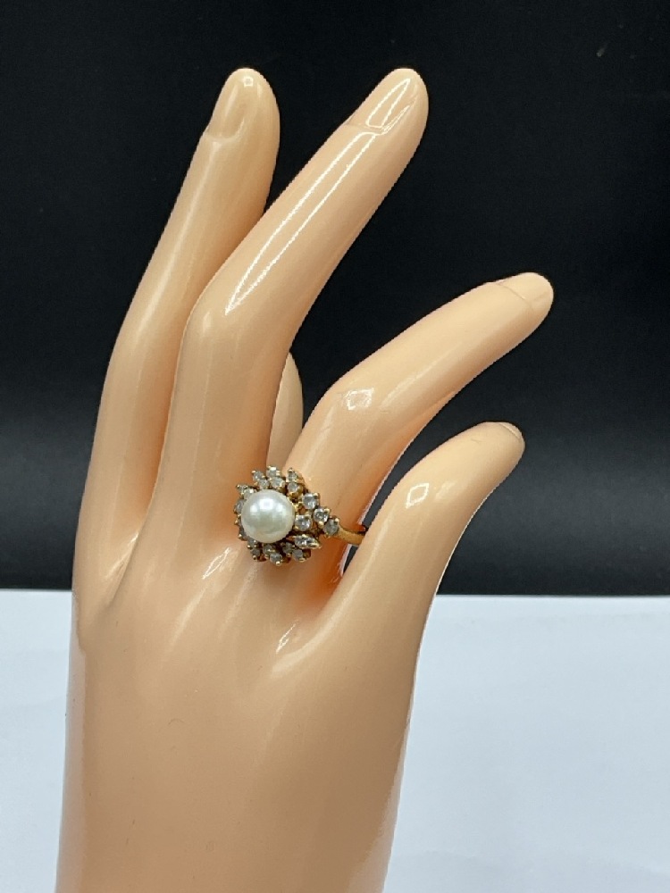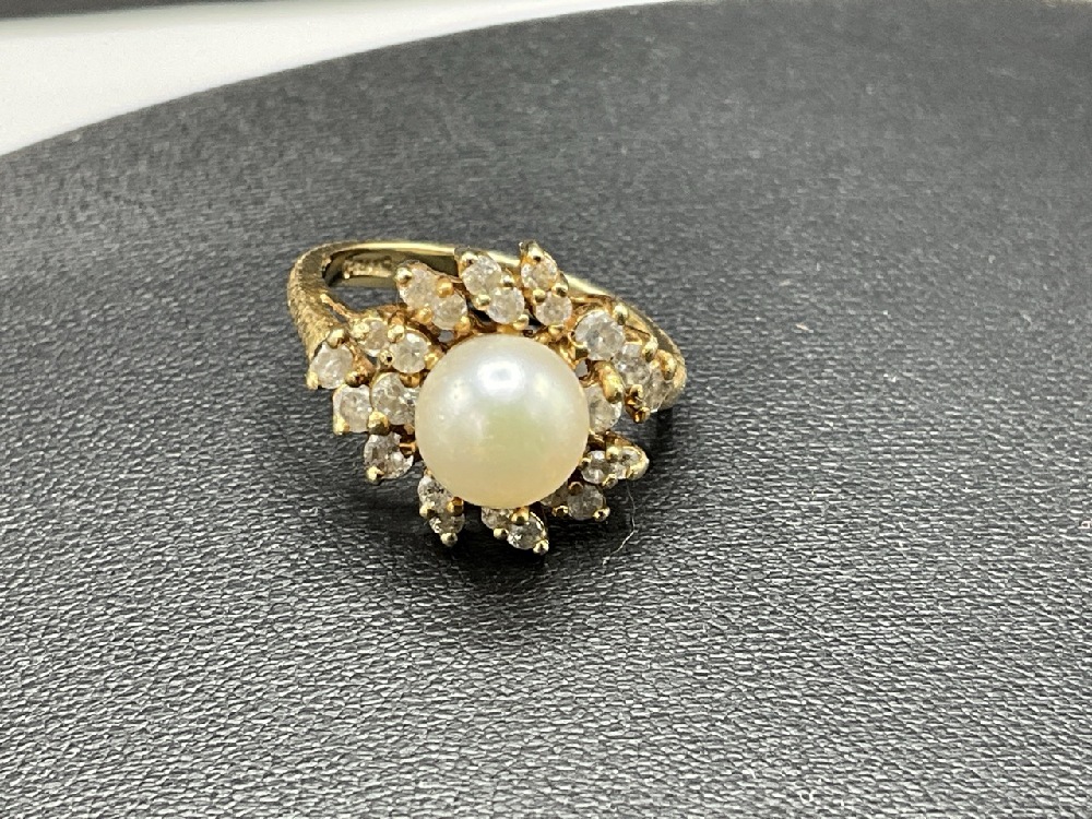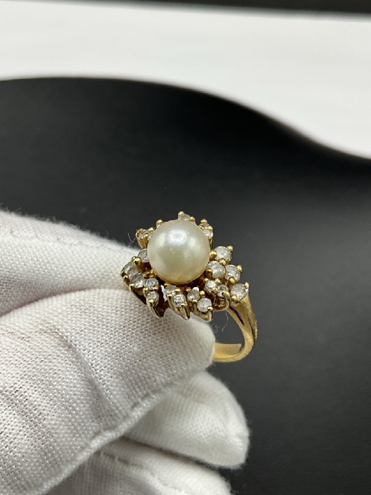 14K Yellow Gold Pearl and Diamond Ring.