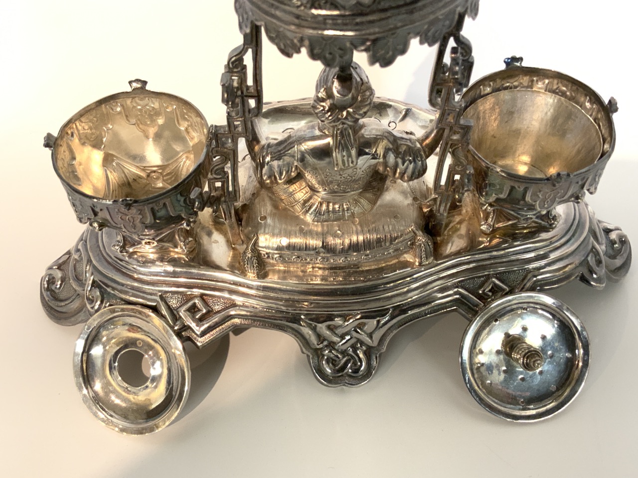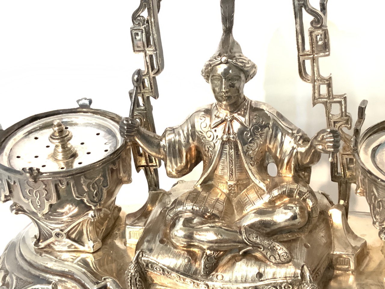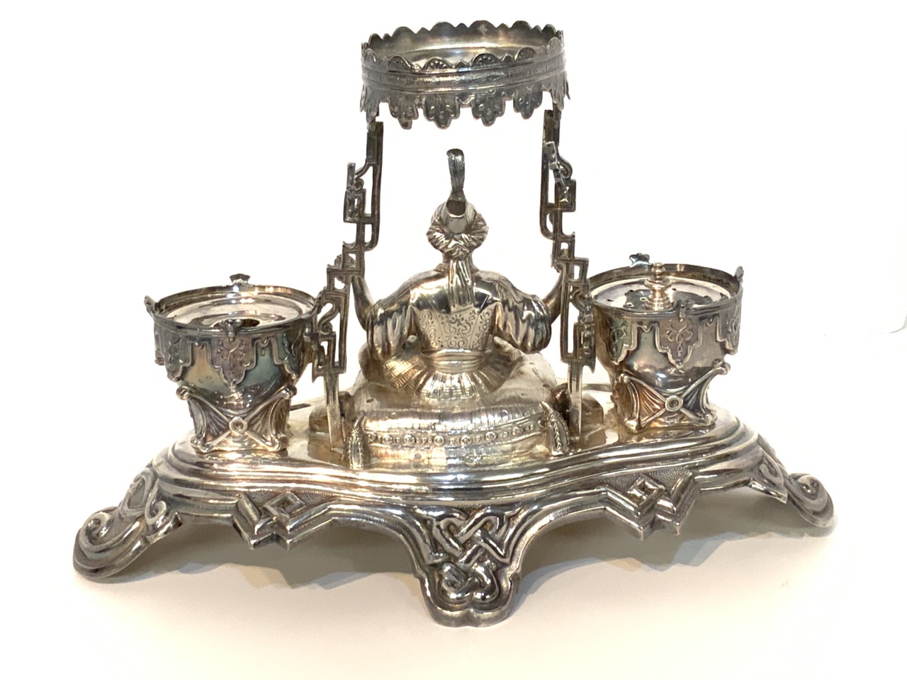 French Silver Ink Stand with Arab seated on carpet. French silver hallmarks.