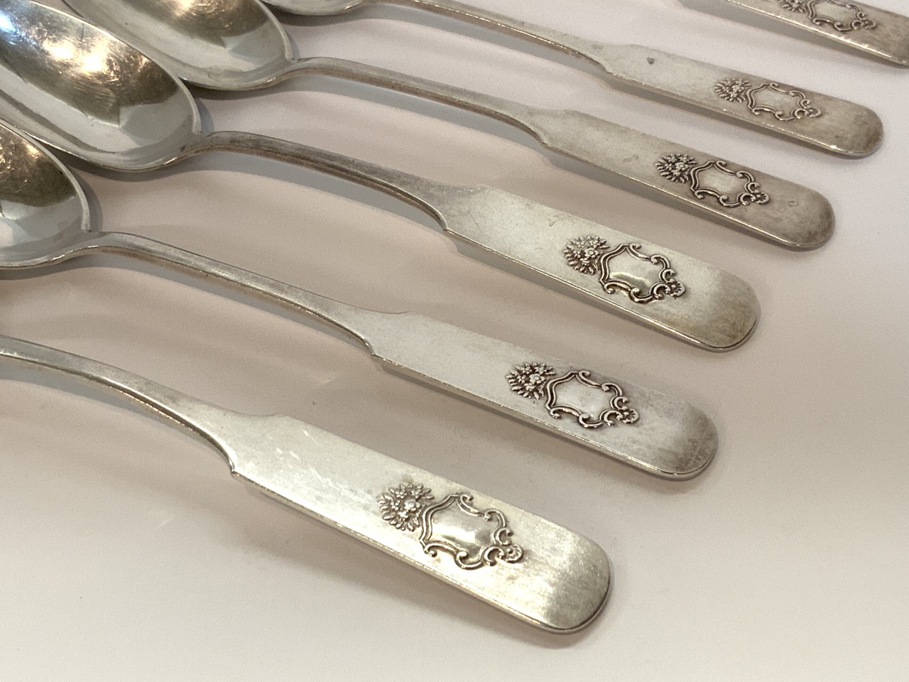 Set of six large Russian silver spoons.