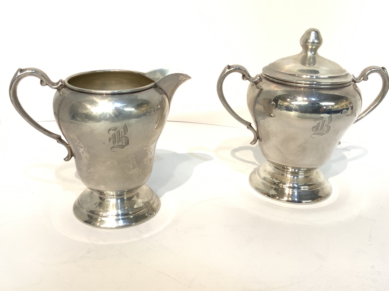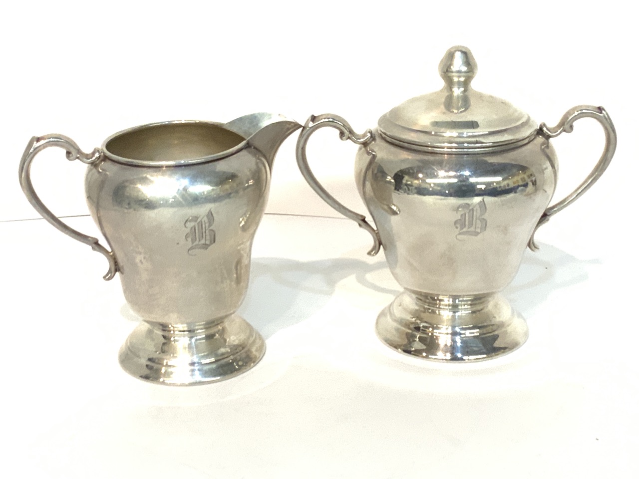 Sterling Silver Sugar And Creamer. "B" monogram.