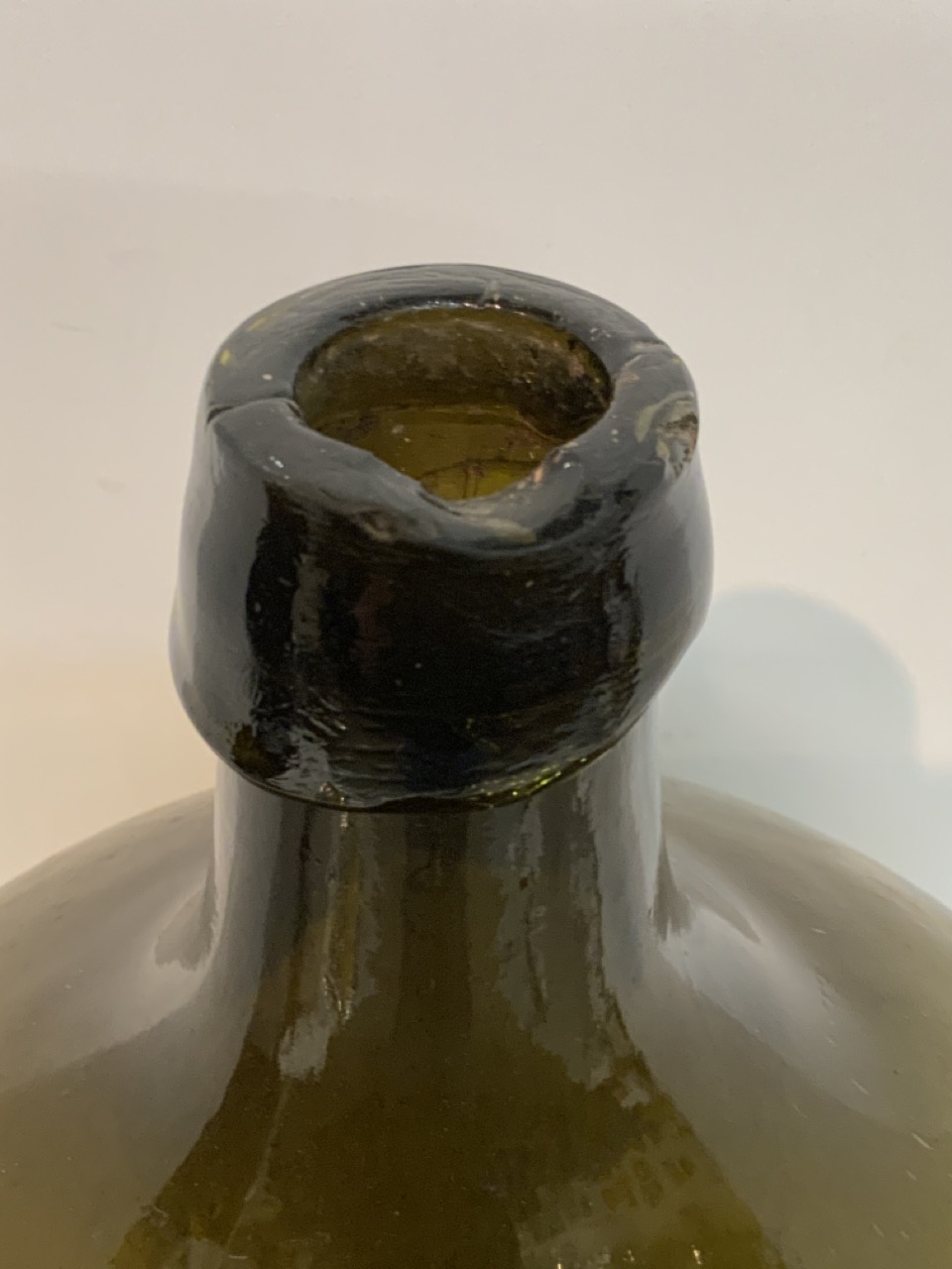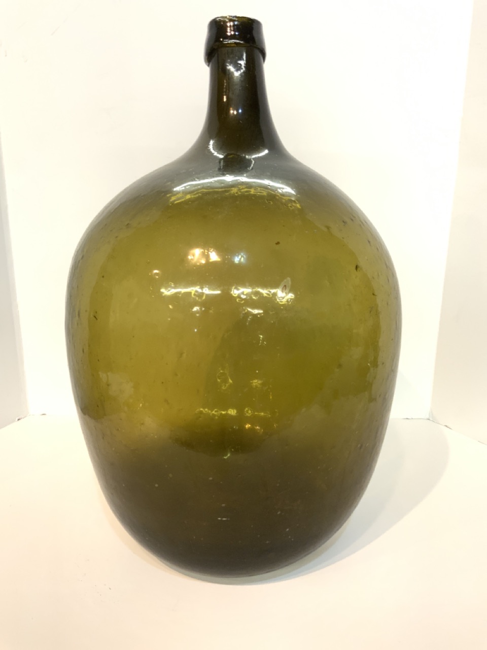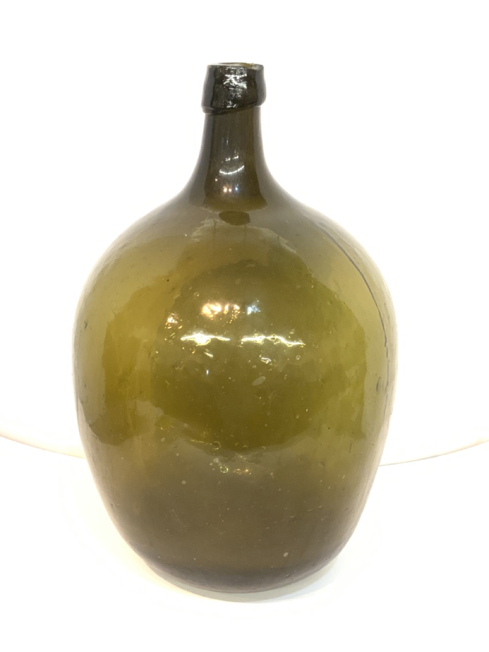 An olive green demijohn bottle. 19th century.
