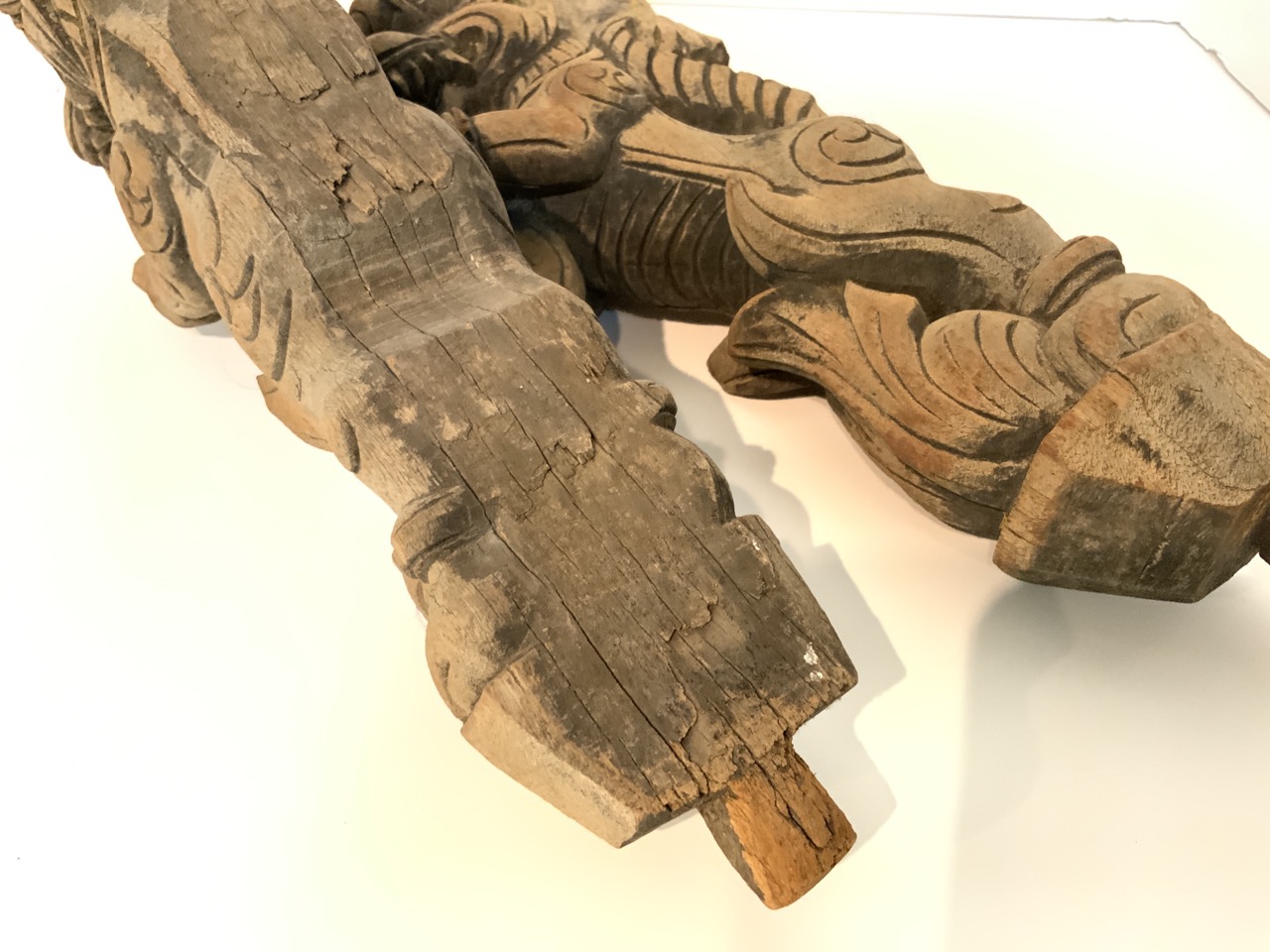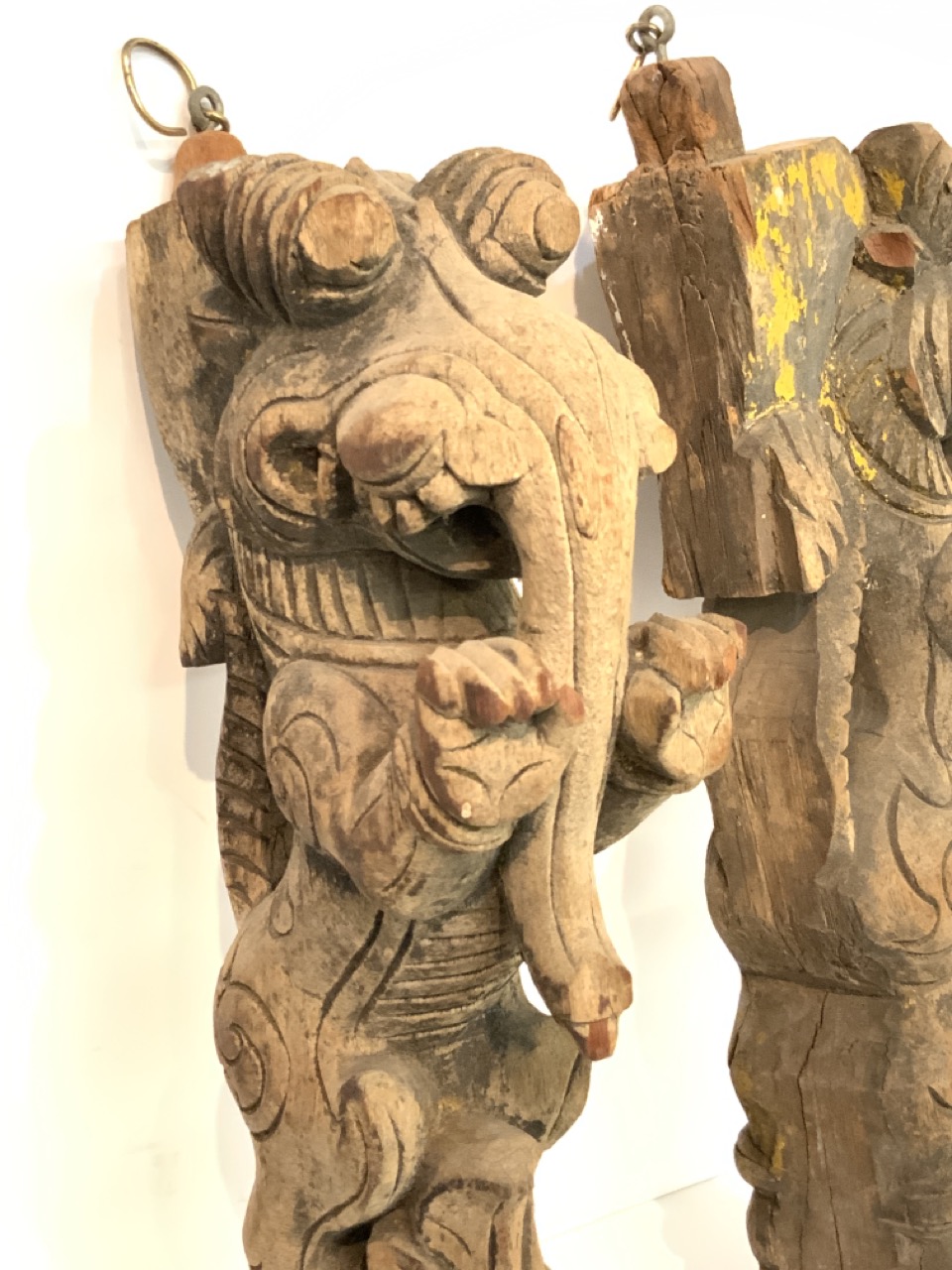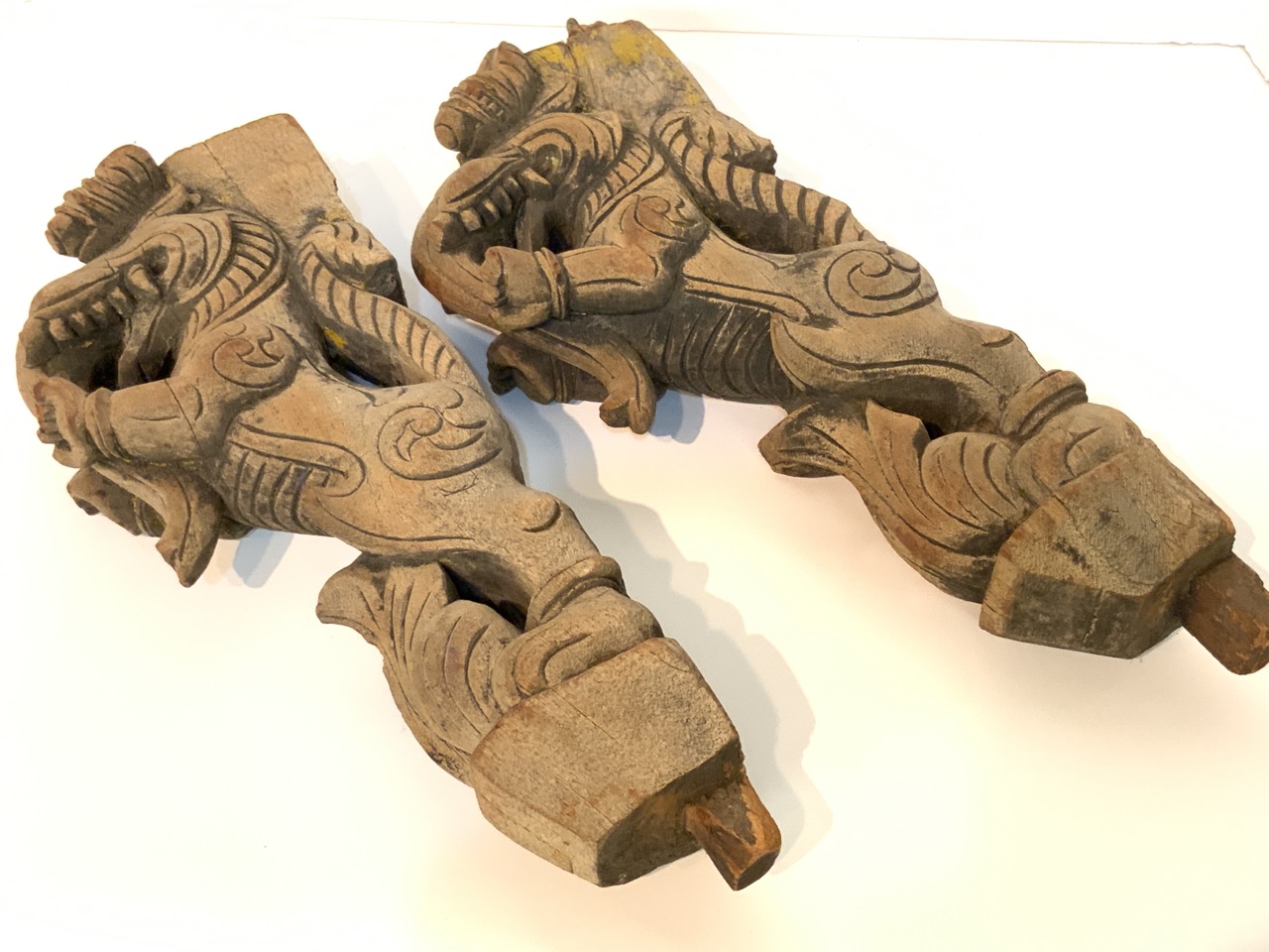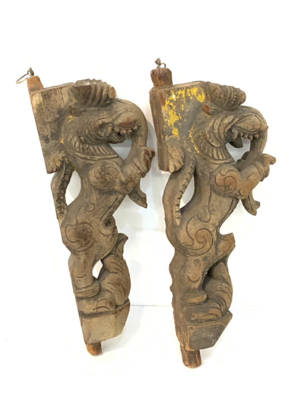 Indian architectural temple "Hanish Hindu God" carved wood brackets.