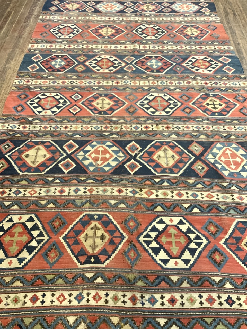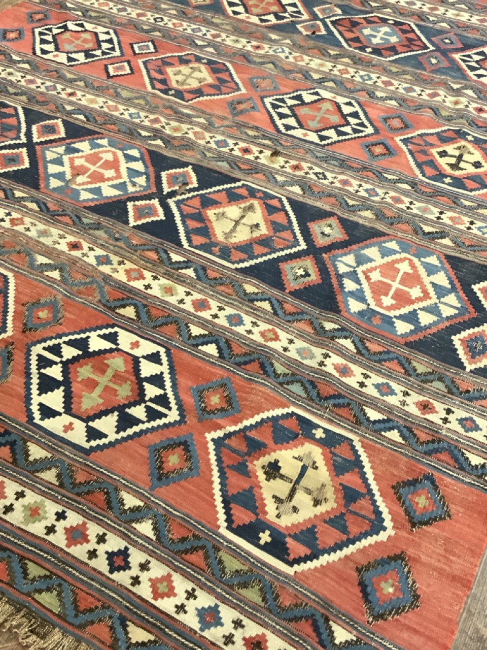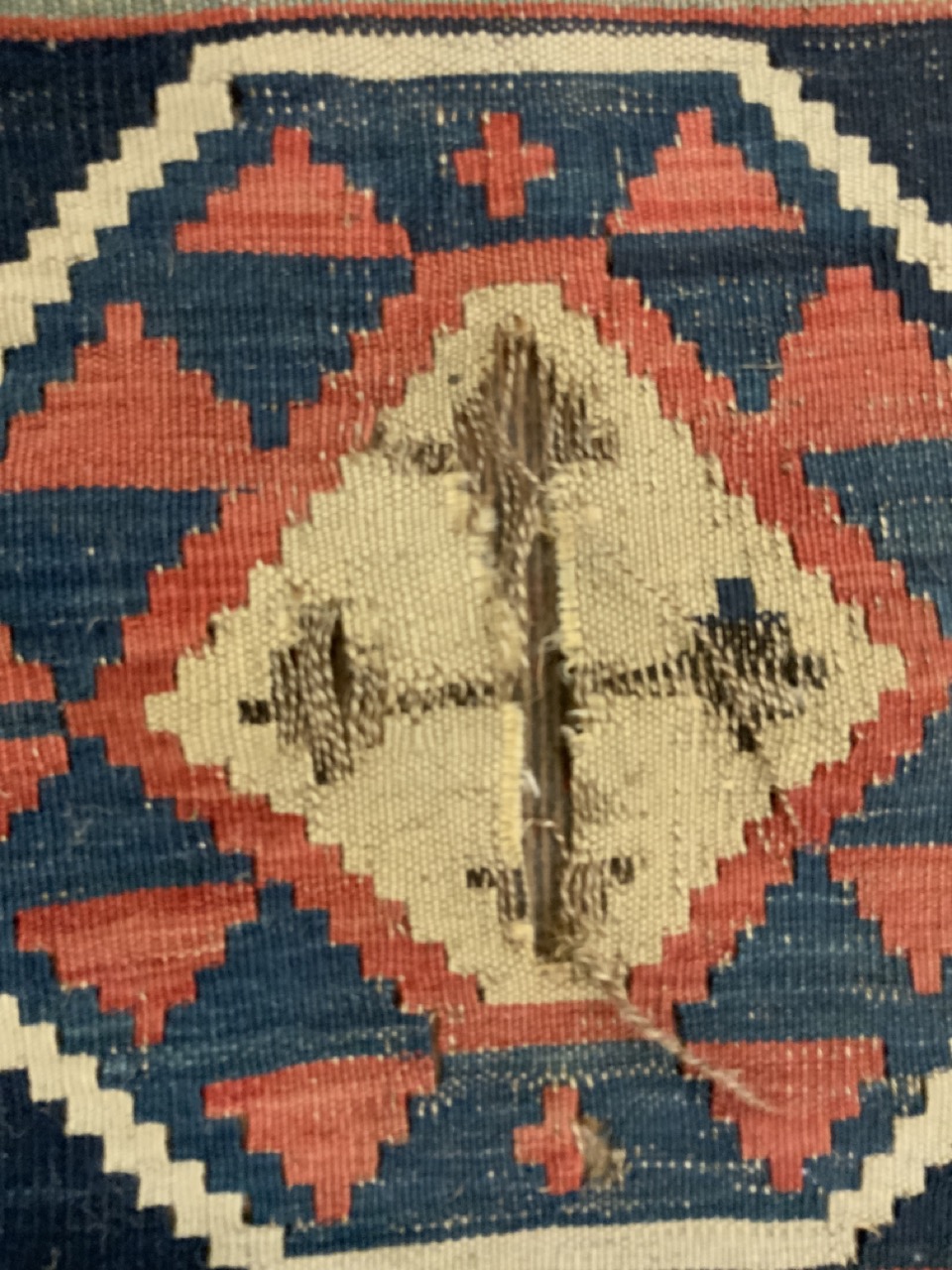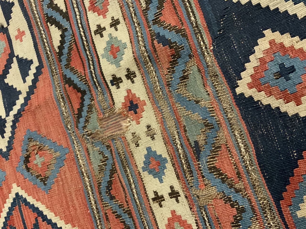 11ft X 5ft 2" Persian Kilim Rug. Heavy fraying and separation.
