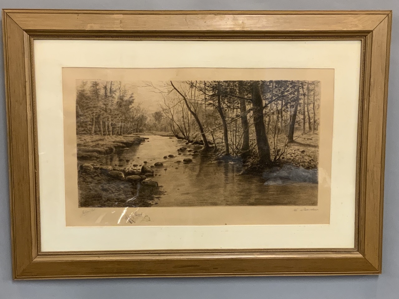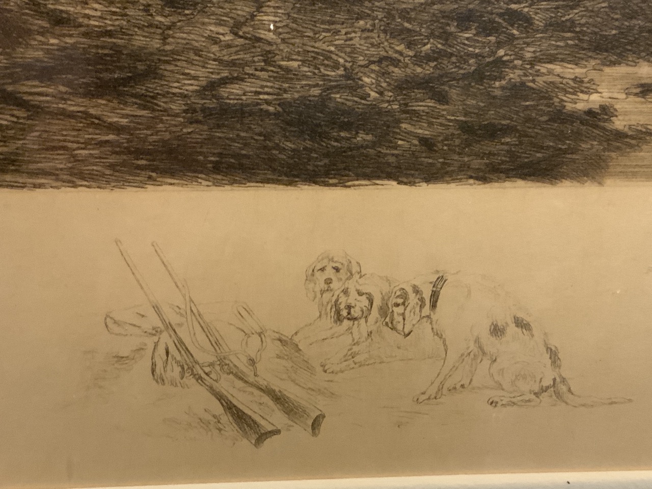 Julian Rix/ A. Drescher etching pencil signed wtih small pencil sketch of hunt scene with guns and dogs.