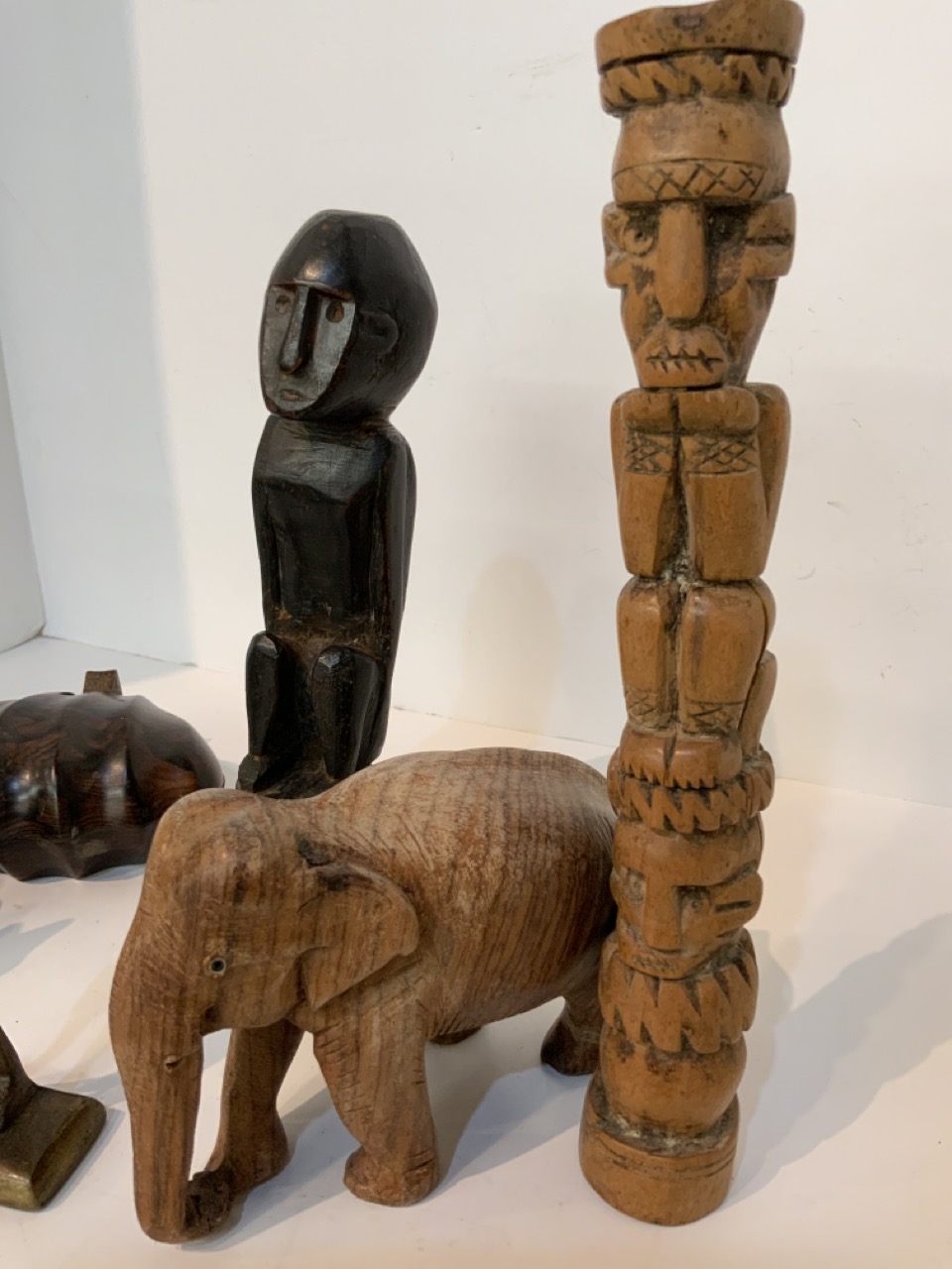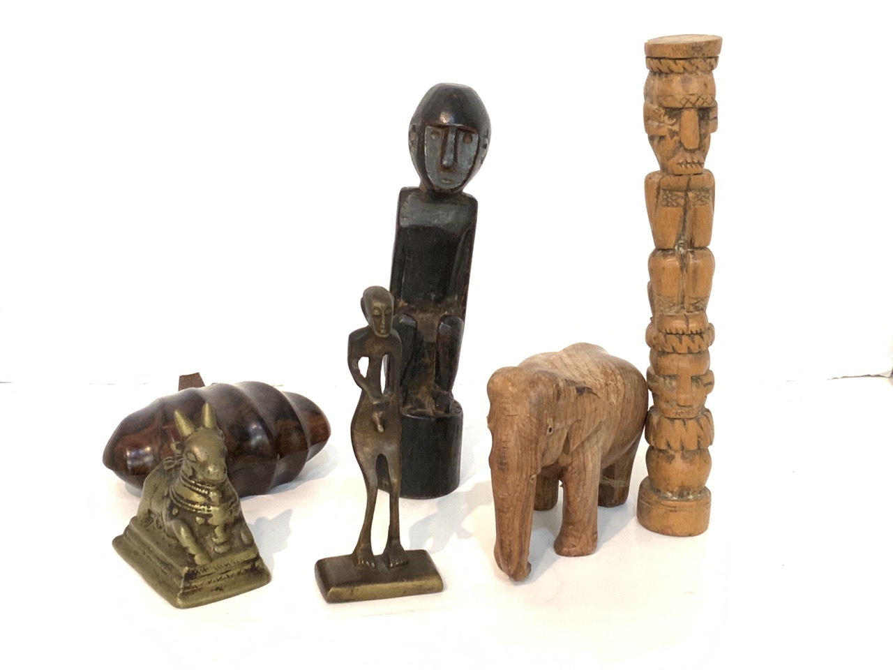 Six (6) Carved Wooden and Metal estate found objects. Hindu, African etc.