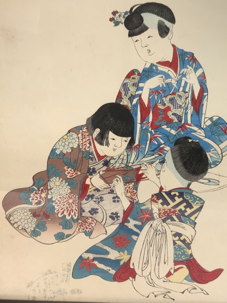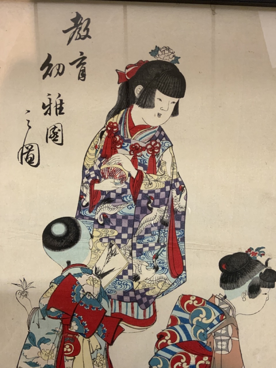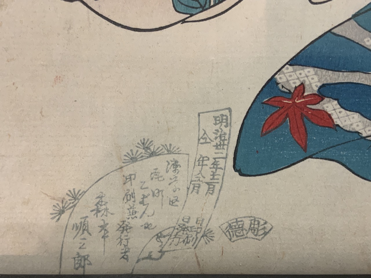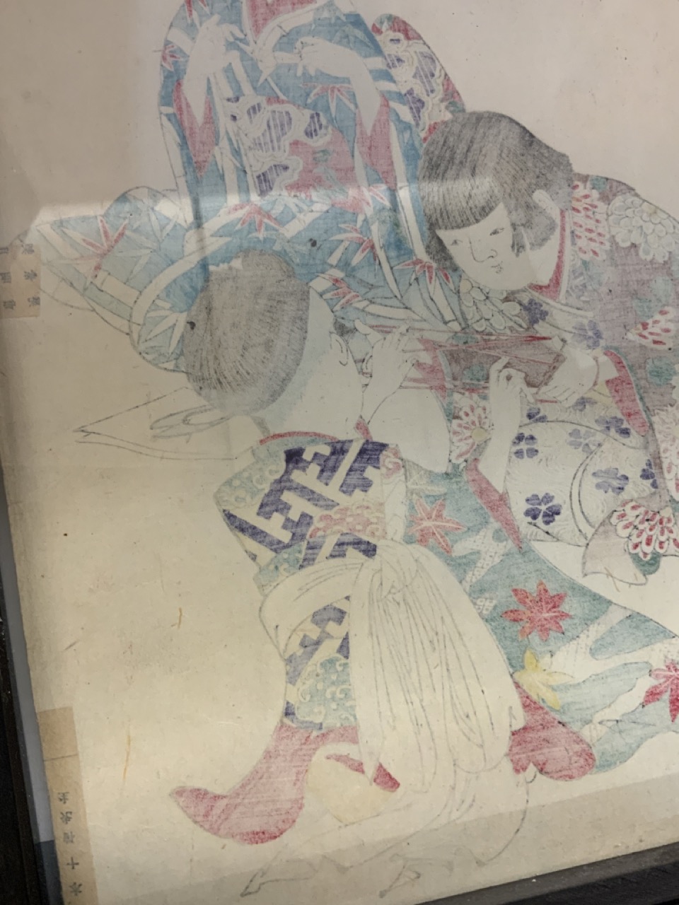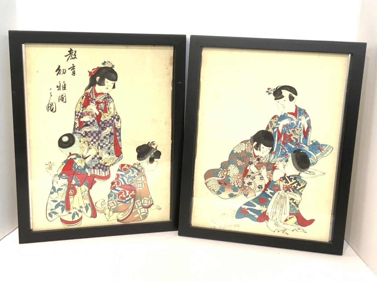 Two (2) 19th century Japanese woodblock prints. Housed in double sided glass frames.