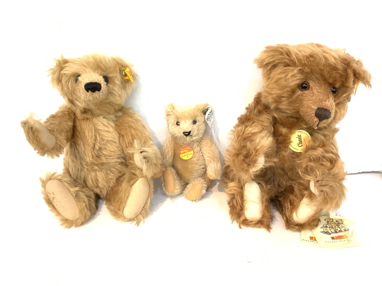 A compiled grouping of German Steiff contemporary bears. Signed.